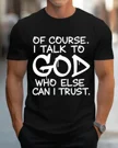Of Course I Talk To God Who Else Can I Trust Summer Cotton Graphic T Shirt-Casual Vintage,Short Sleeve,Soft Fabric,Comfortable Fit
