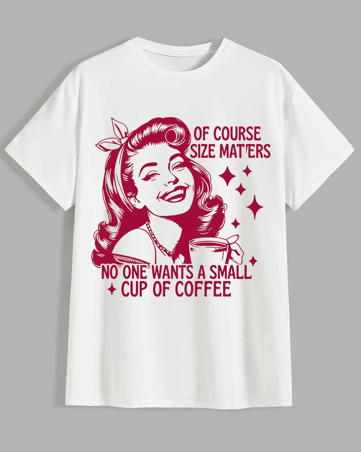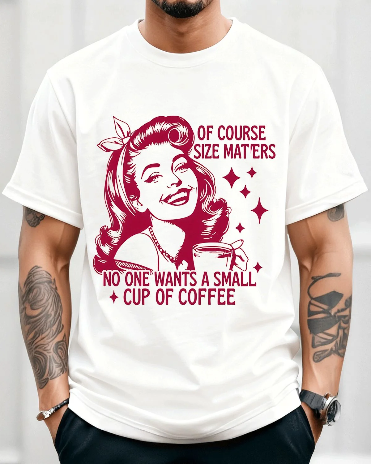 Of Course Size Matters No One Wants a Small Cup of Coffee Summer Cotton Graphic T Shirt - Vintage Retro, Short Sleeve, Soft Fabric, Comfortable Fit
