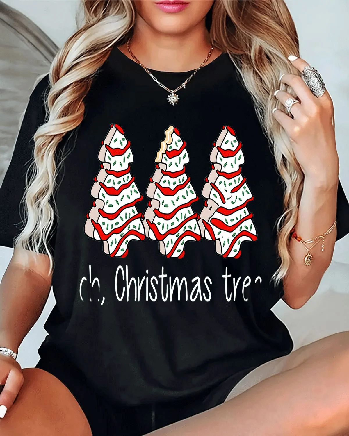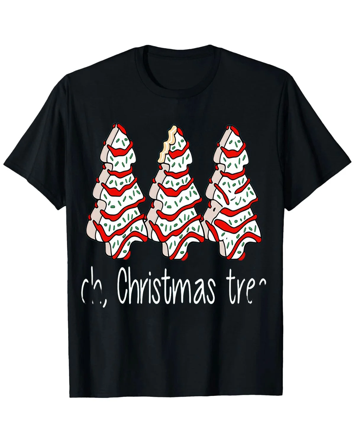 Oh Christmas Tree Holiday Cookies Summer Cotton Graphic T Shirt - Casual Festive, Short Sleeve, Soft Fabric, Comfortable Fit