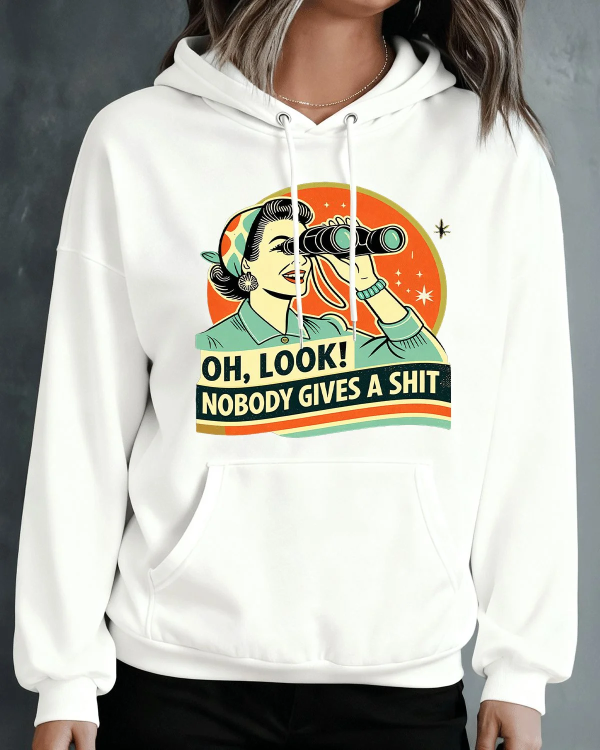 Oh Look Nobody Cares Cozy Graphic Hoodie for Men and Women - Retro Vintage, Long Sleeve, Soft Fabric, Comfortable Fit