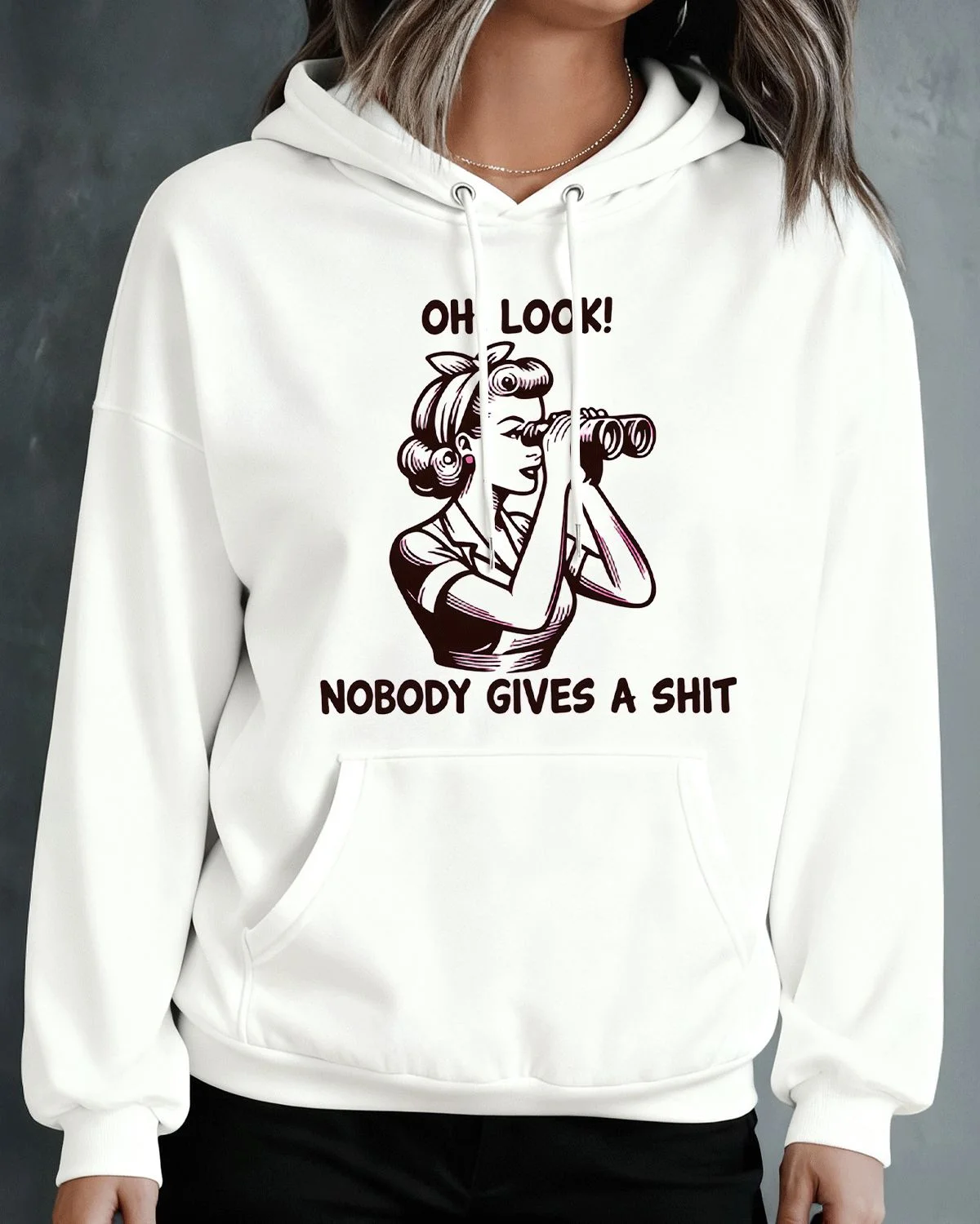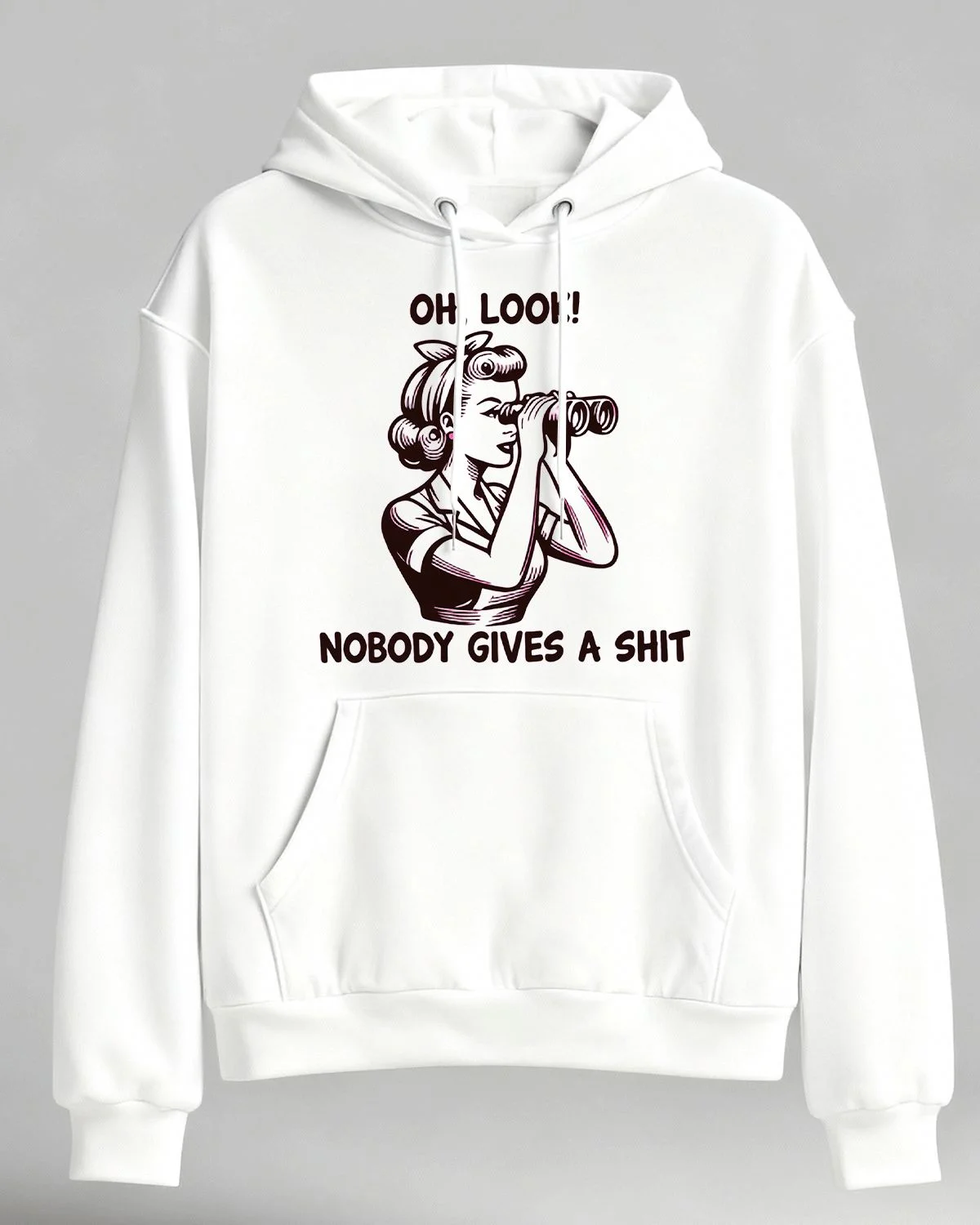 Oh Look Nobody Cares Cozy Graphic Hoodie for Men and Women - Casual Retro, Long Sleeve, Soft Fabric, Comfortable Fit
