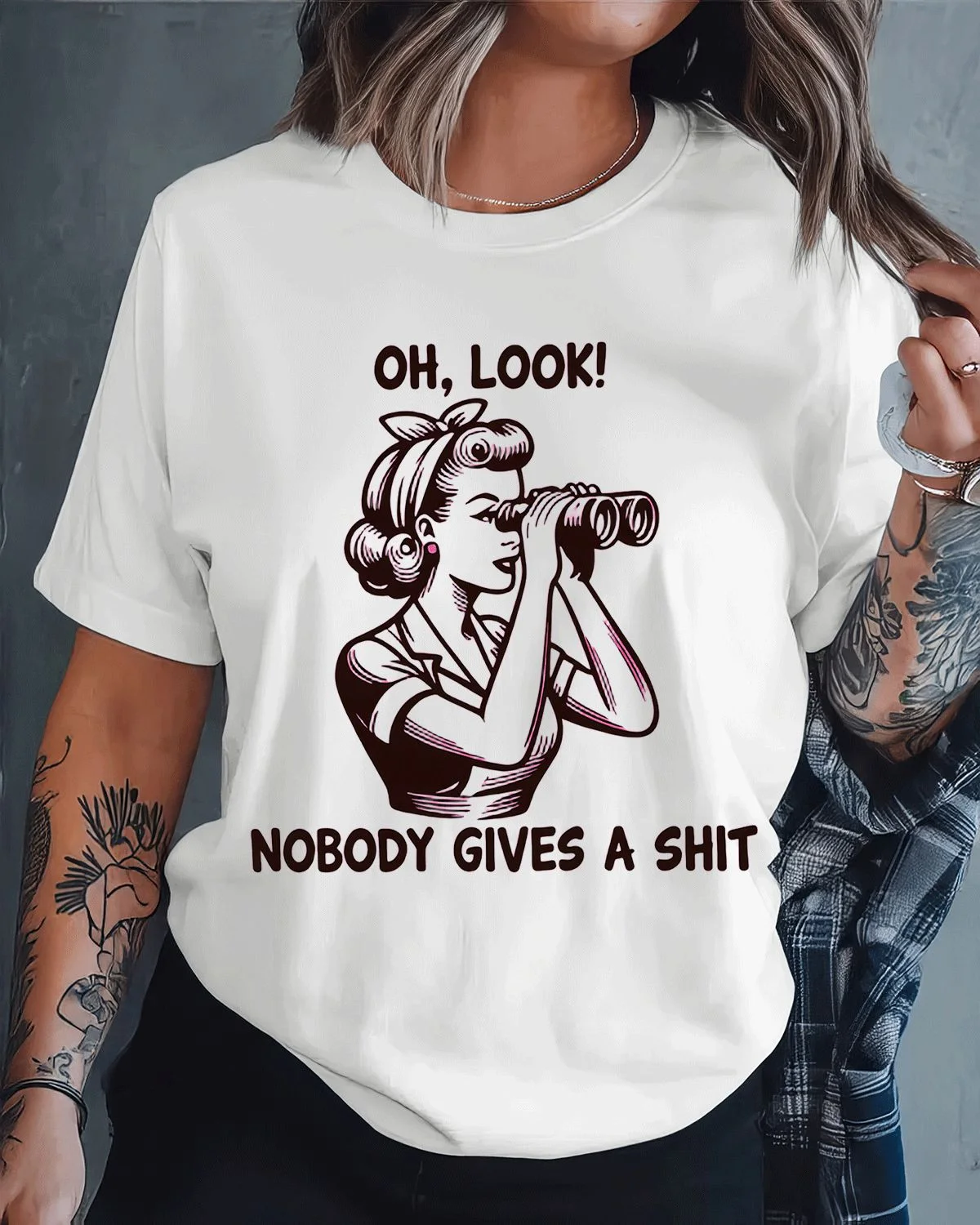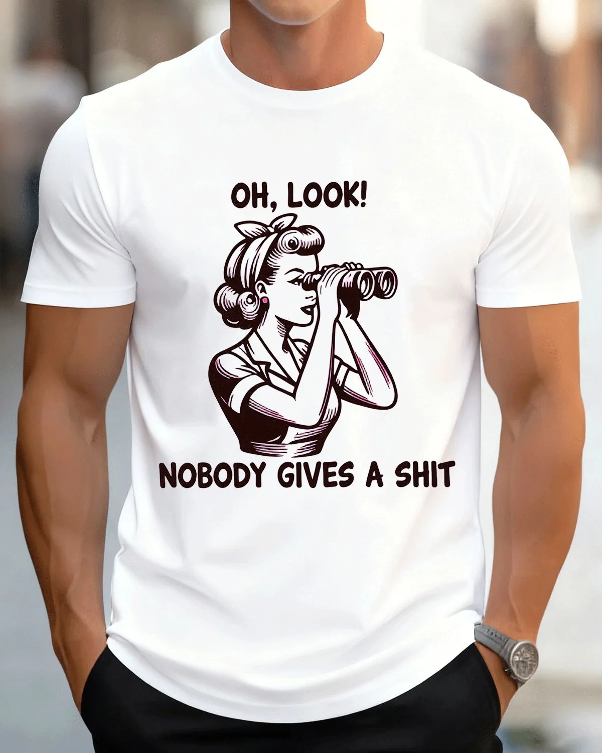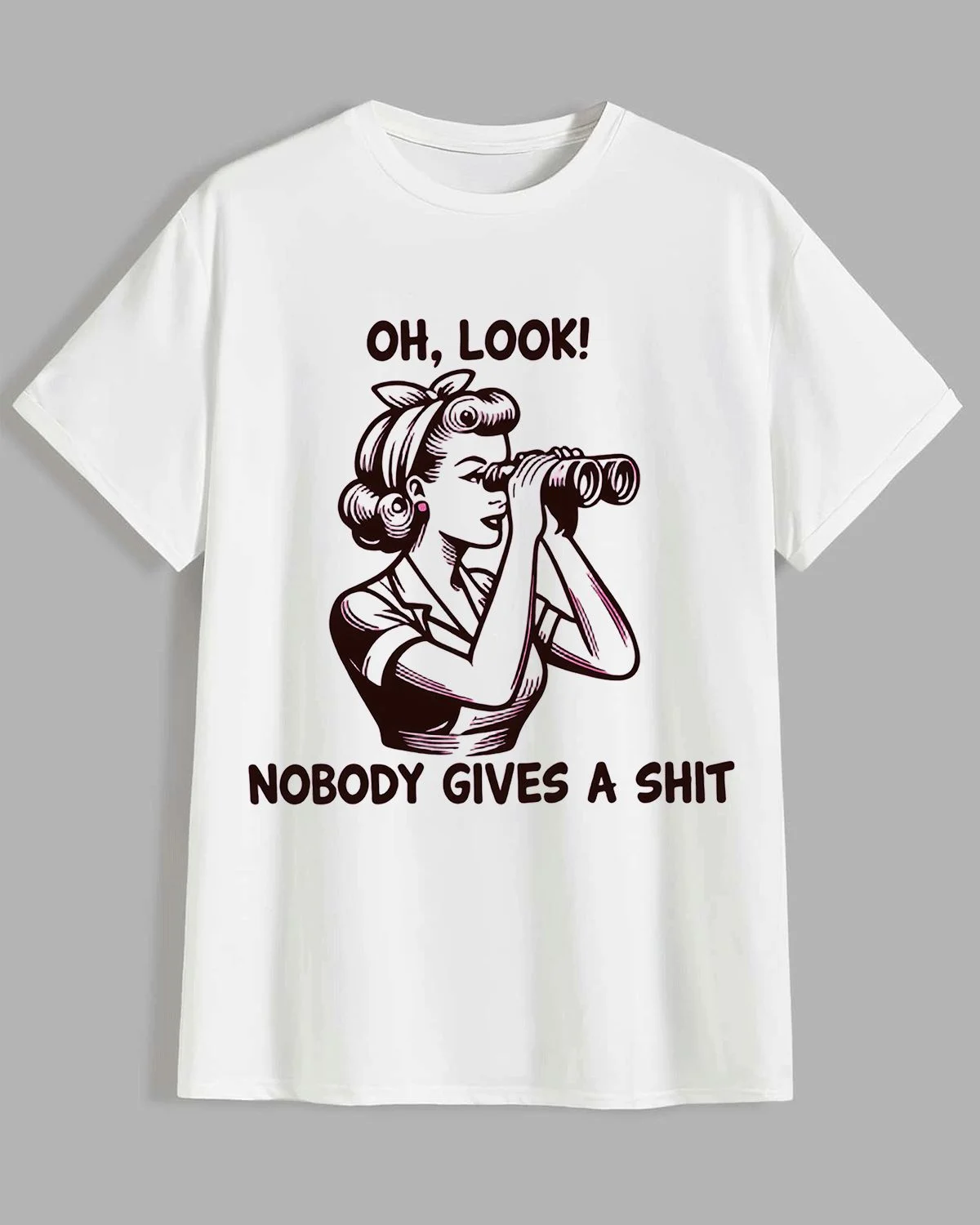 Oh Look Nobody Cares Summer Cotton Graphic T Shirt - Casual Retro, Short Sleeve, Soft Fabric, Comfortable Fit