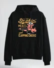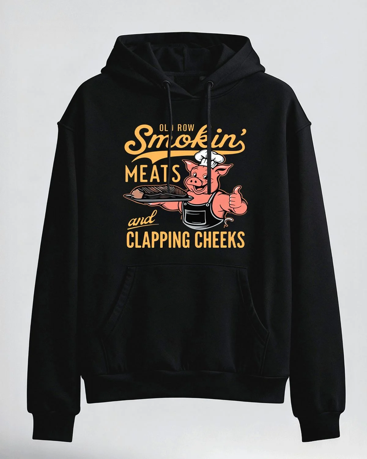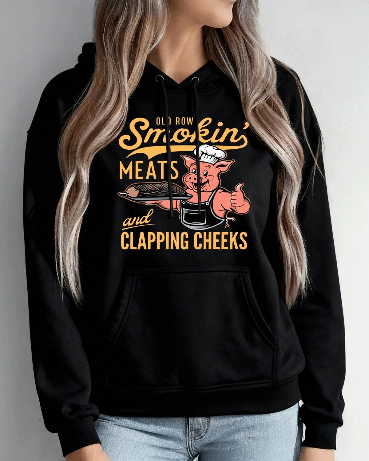 Old Row Smokin Meats Funny Pig Chef Cozy Cotton Graphic Hoodie with Pocket-Vintage Retro,Long Sleeve,Soft Fabric,Comfortable Fit