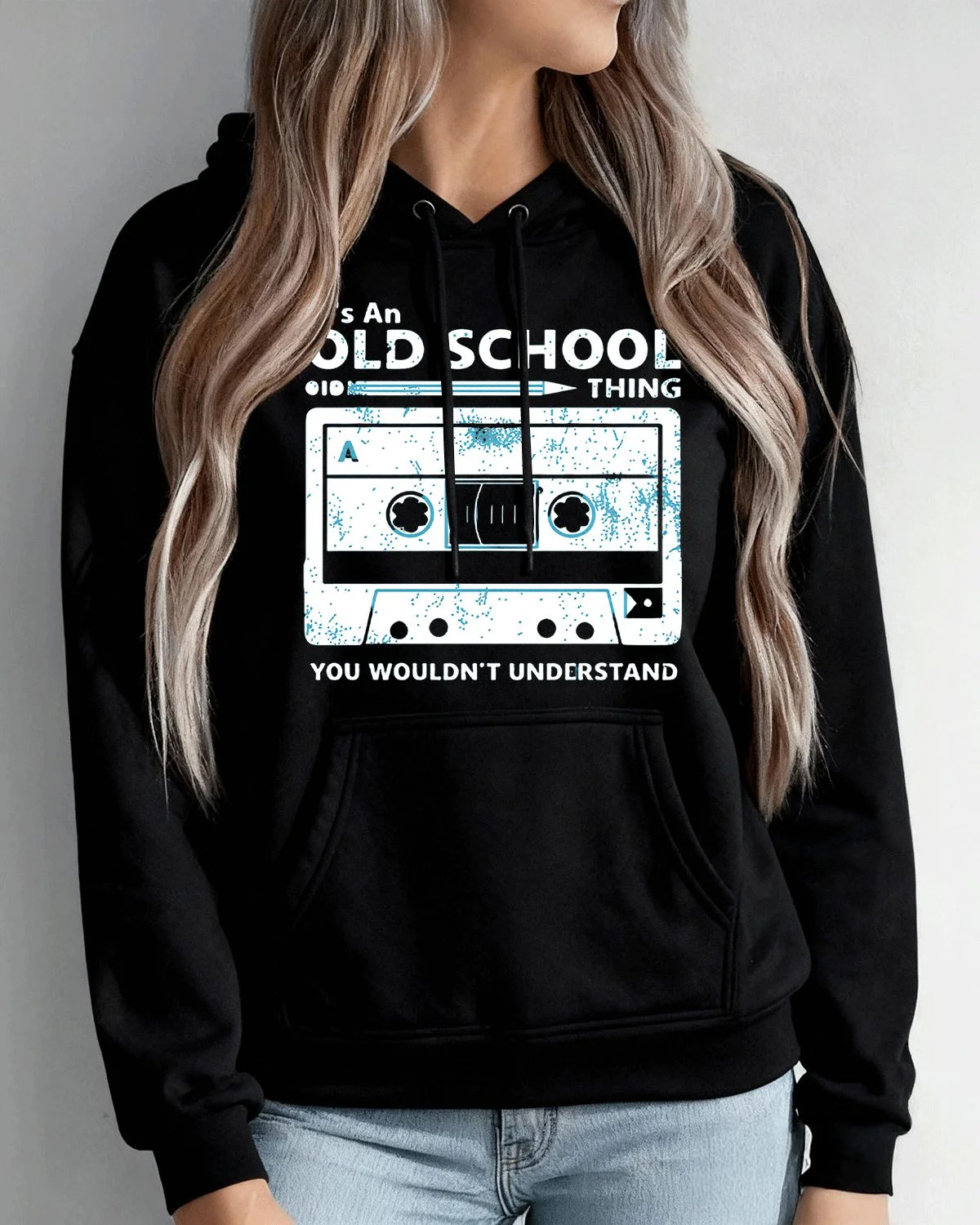 Old School Cassette Tape Cozy Graphic Hoodie for Men and Women - Vintage Retro, Long Sleeve, Soft Fabric, Comfortable Fit
