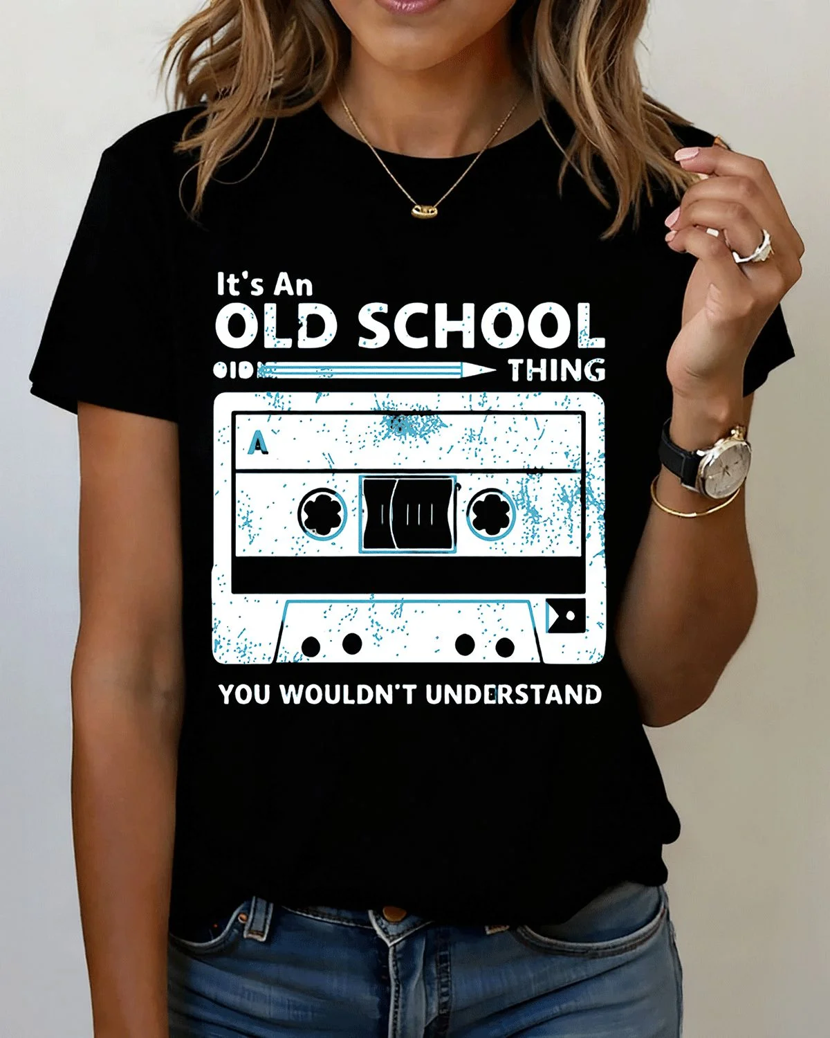 Old School Cassette Tape Summer Cotton Graphic T Shirt - Vintage Retro, Short Sleeve, Soft Fabric, Comfortable Fit