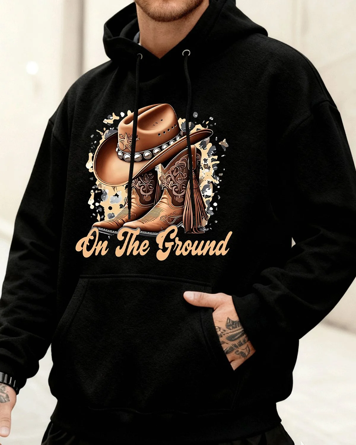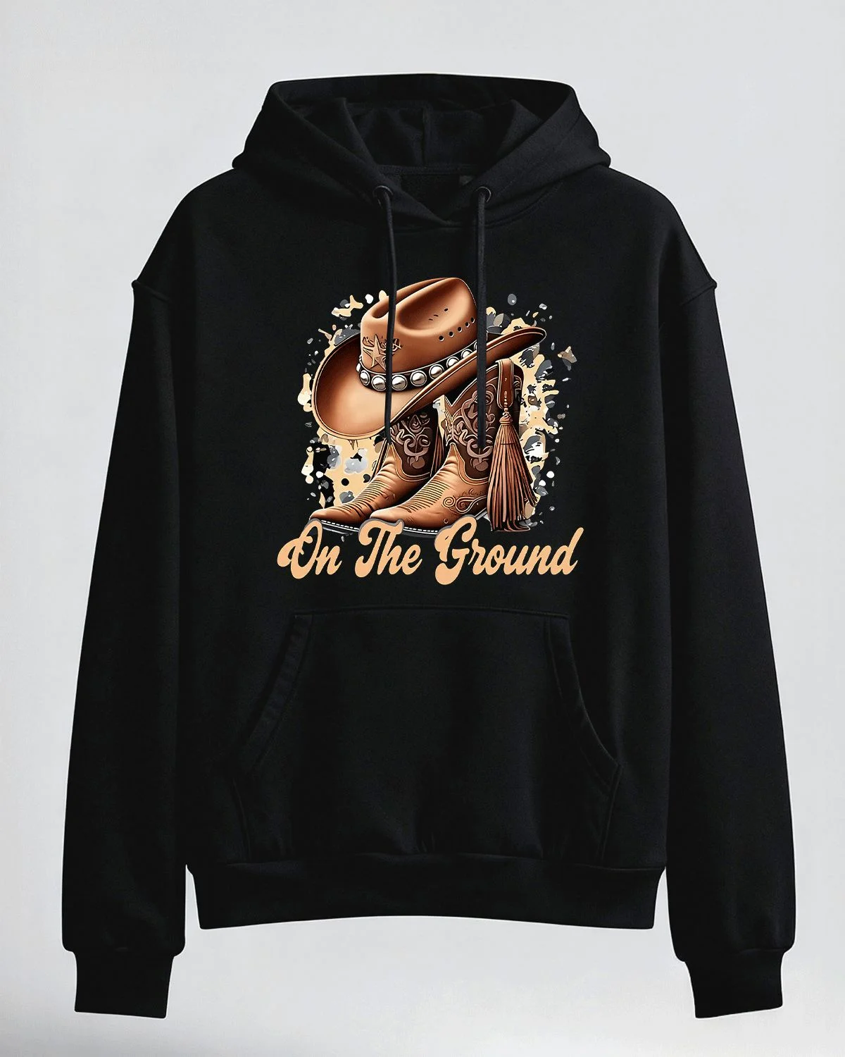 On The Ground Cowboy Hat and Boots Summer Cozy Graphic Hoodie-Vintage Western,Long Sleeve,Soft Fabric,Comfortable Fit