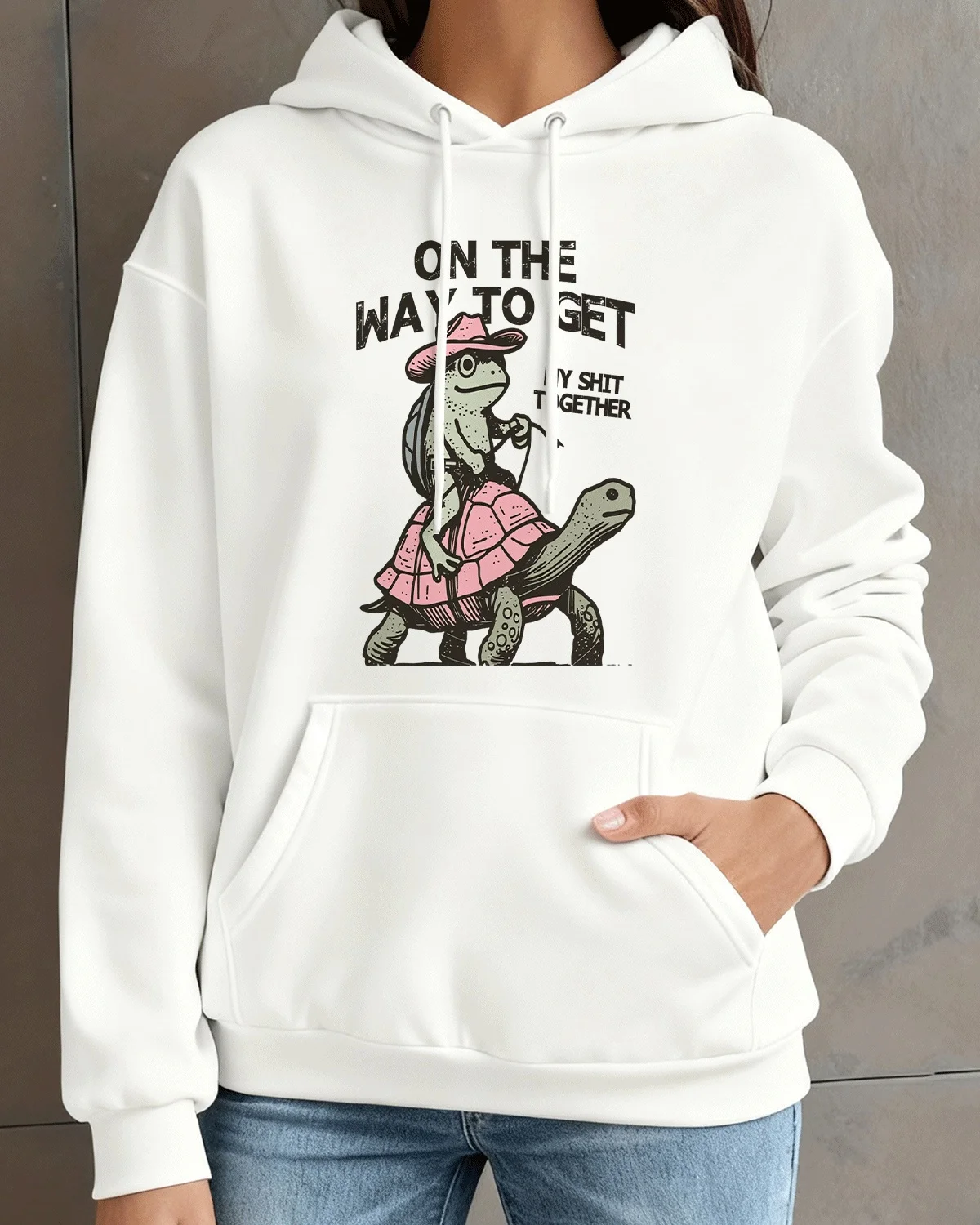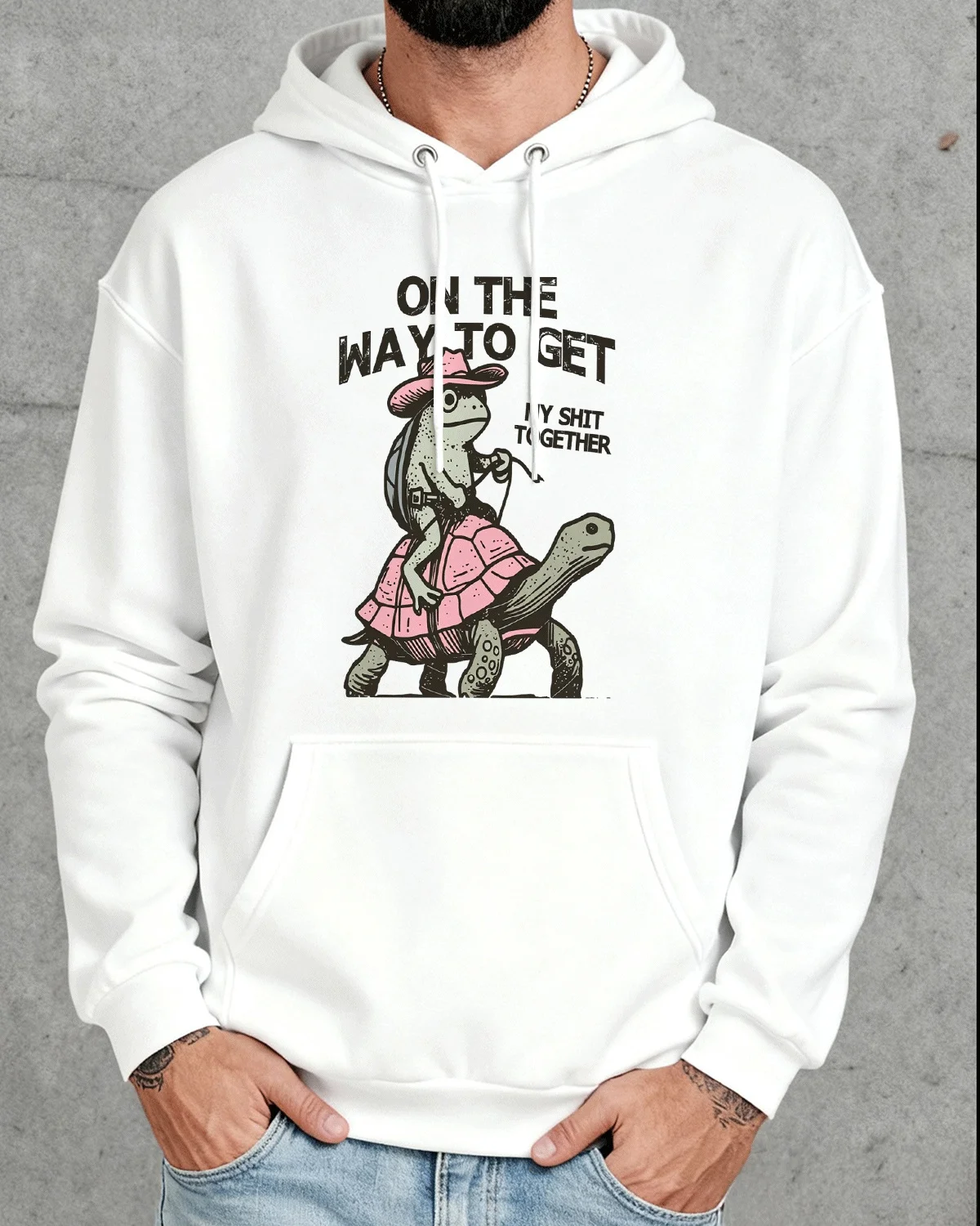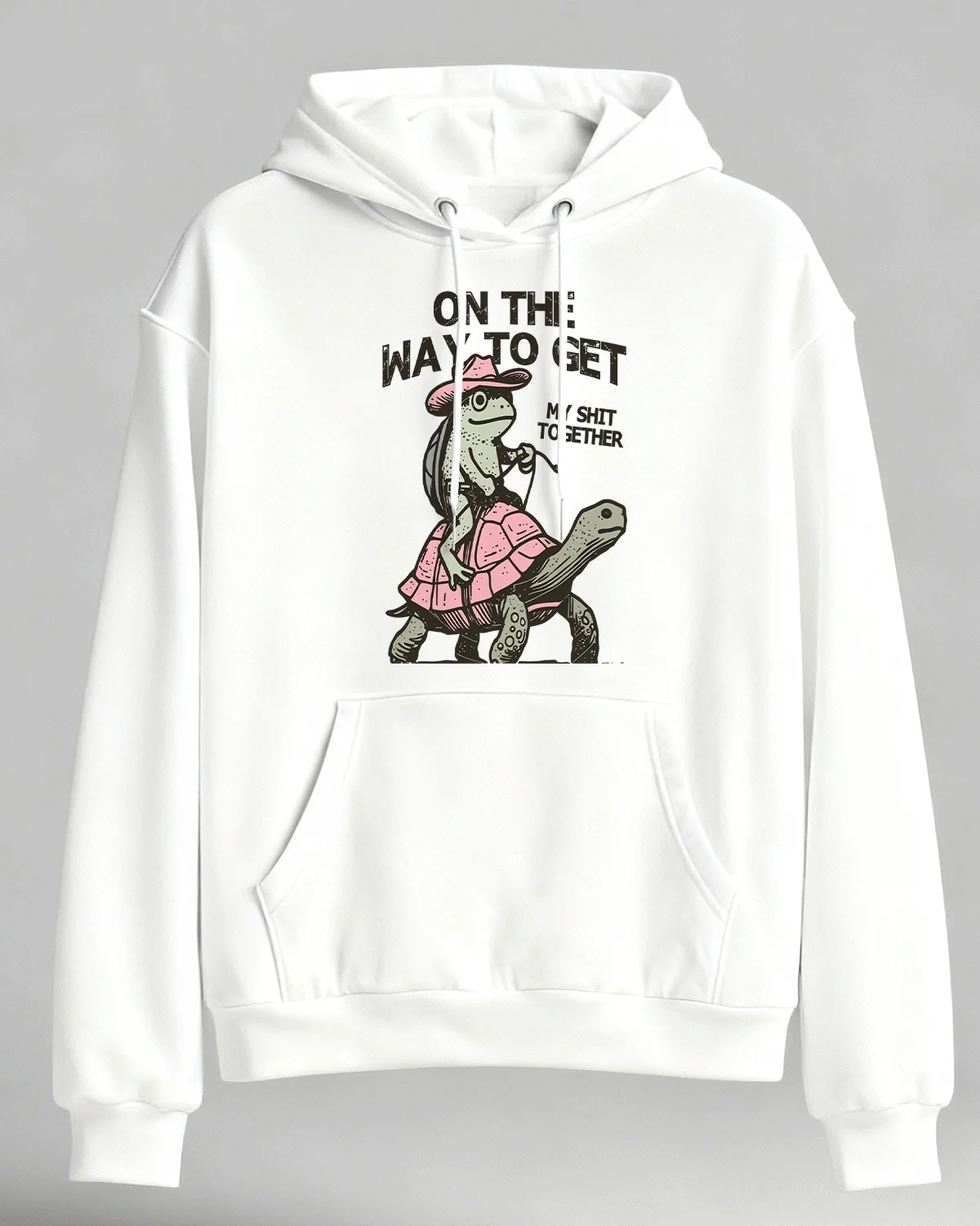 On The Way To Get It Together Turtle Frog Cozy Cotton Graphic Hoodie-Casual Vintage,Long Sleeves,Soft Fabric,Comfortable Fit