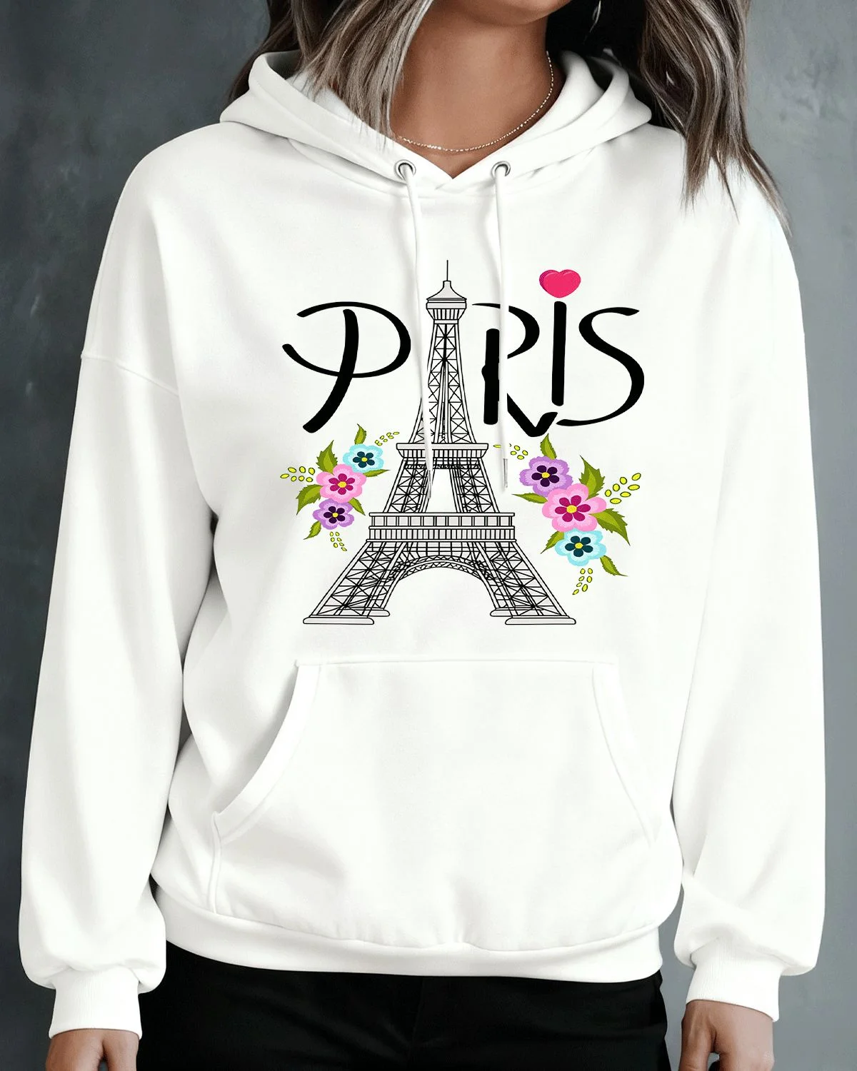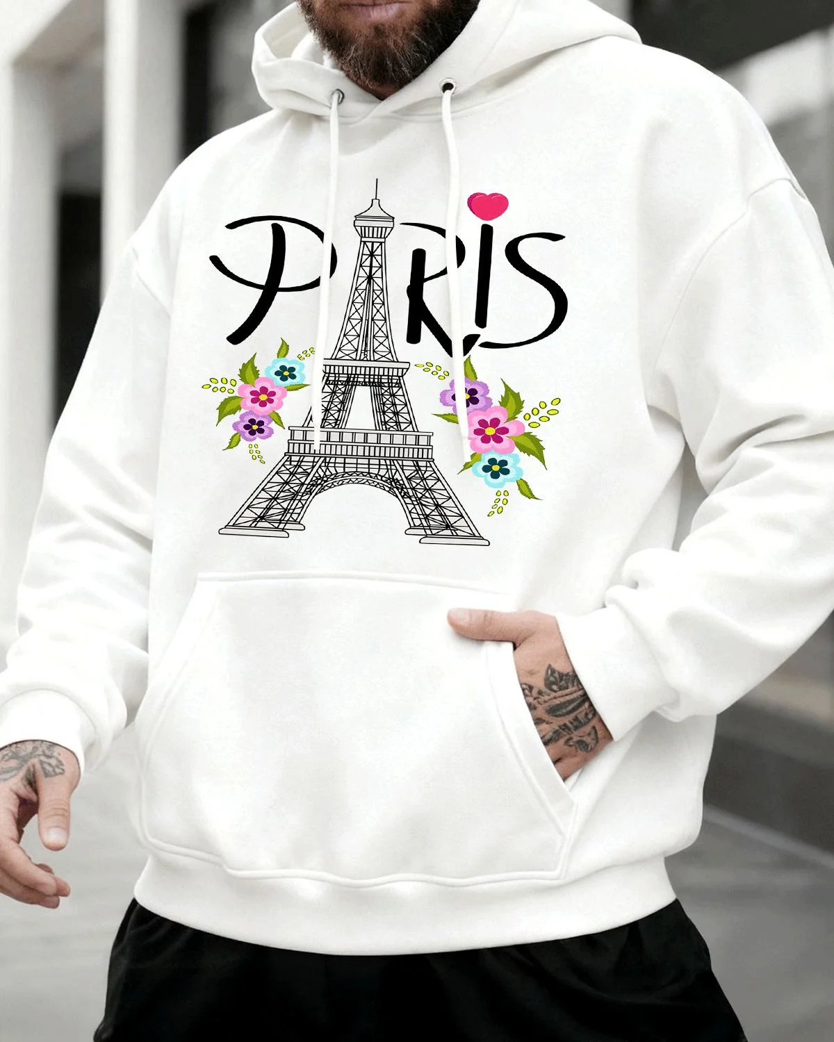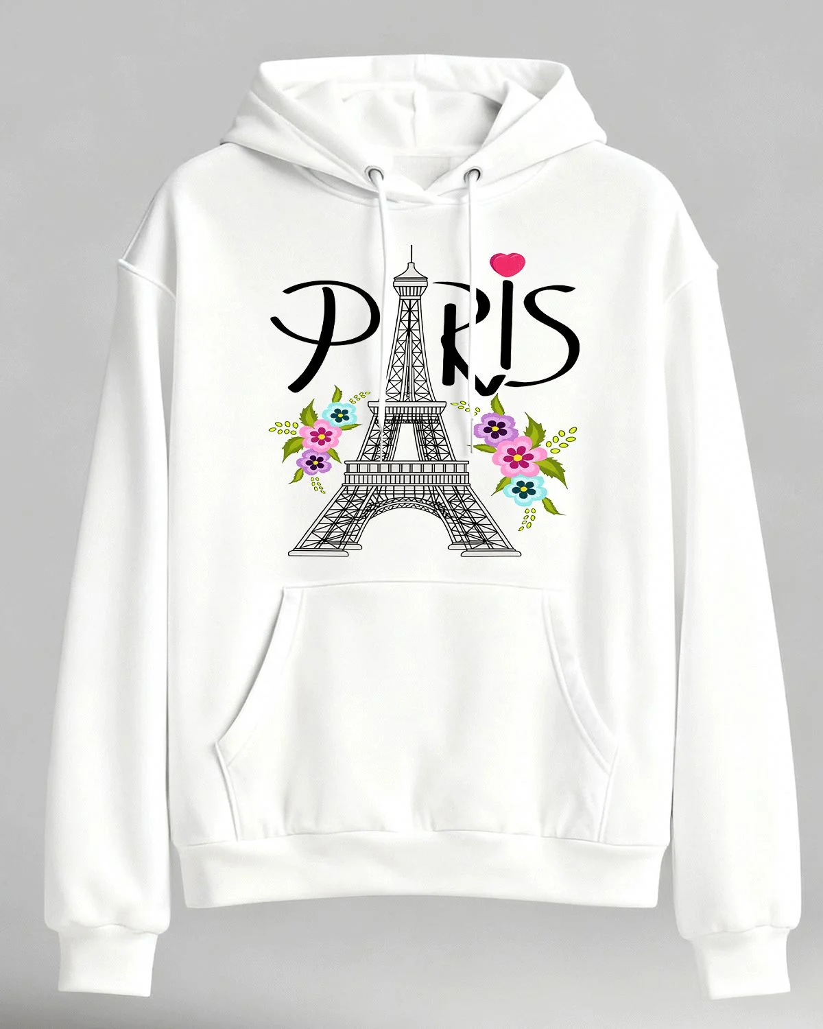 Paris Eiffel Tower with Colorful Flowers Cozy Graphic Hoodie for Men and Women - Casual Chic, Long Sleeve, Soft Fabric, Comfortable Fit
