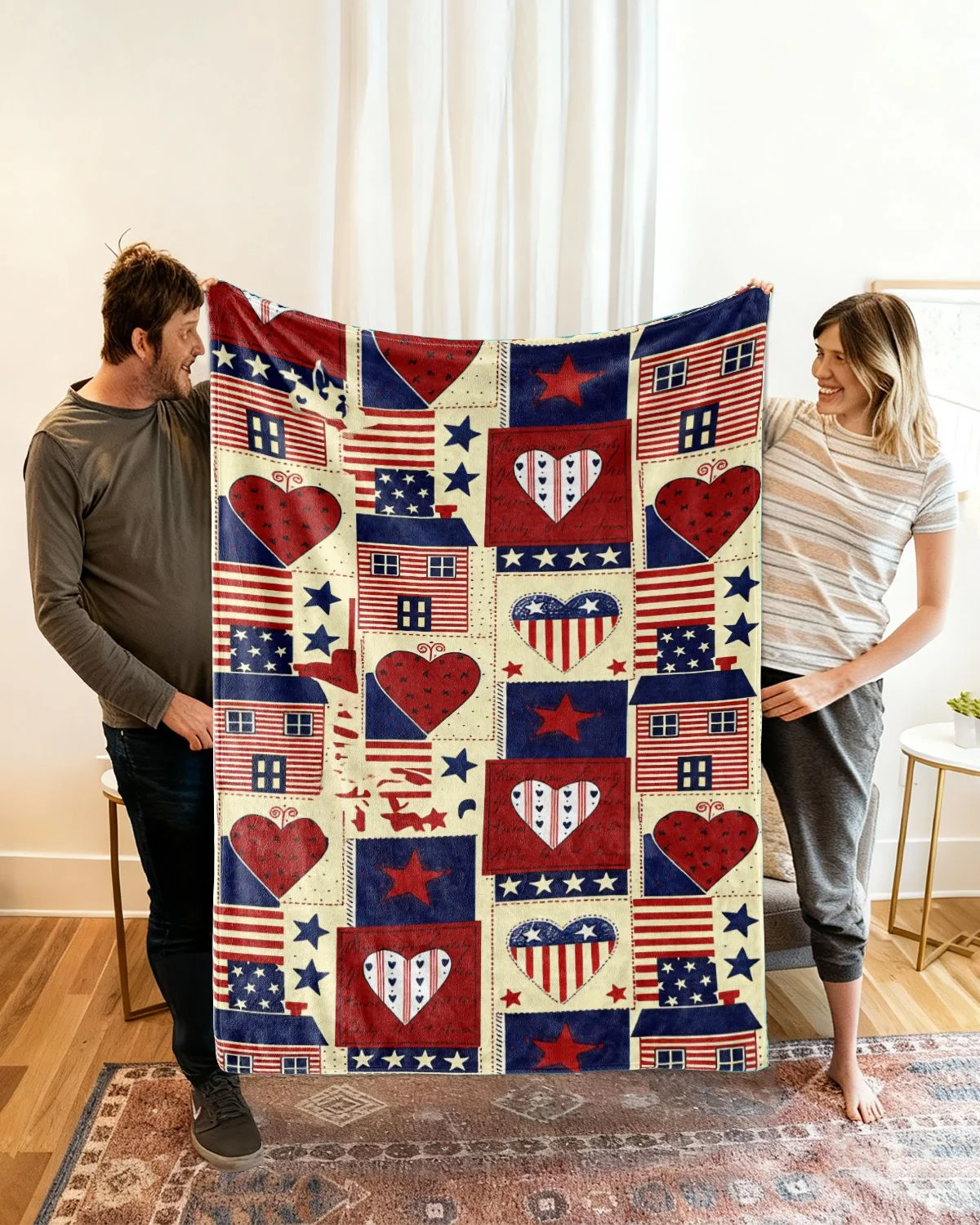Patriotic Love and Home Blessings Gift Blanket-Cozy Classic,Warm,Plush,Durable,For Couch,Bedroom Use