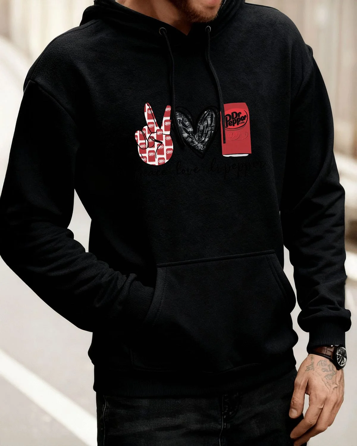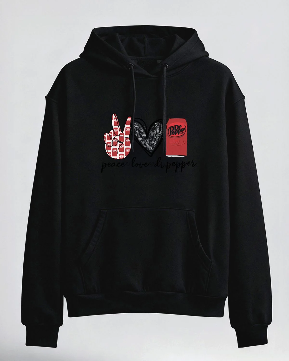 Peace Love Dr Pepper Cozy Cotton Graphic Hoodie with Pocket-Casual Vintage,Long Sleeve,Soft Fabric,Comfortable Fit