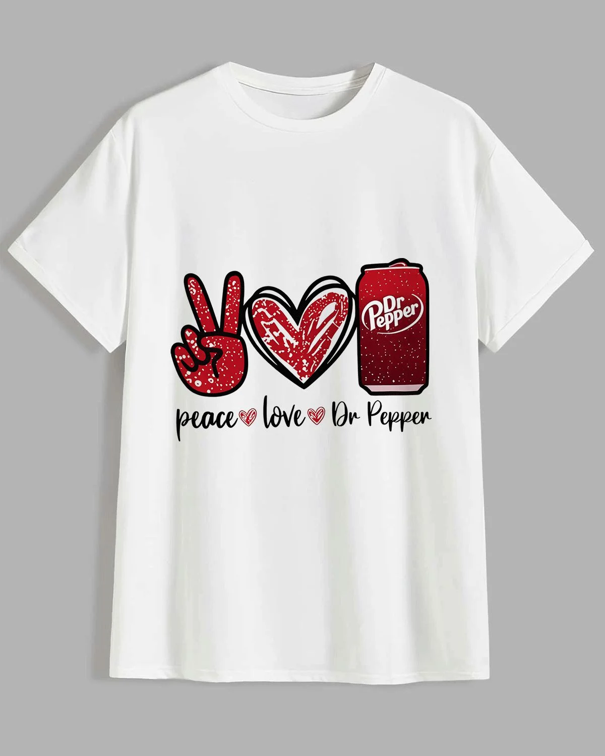 Peace Love Dr Pepper Summer Cotton Graphic T Shirt - Casual Retro,Short Sleeve,Soft Fabric,Comfortable Fit