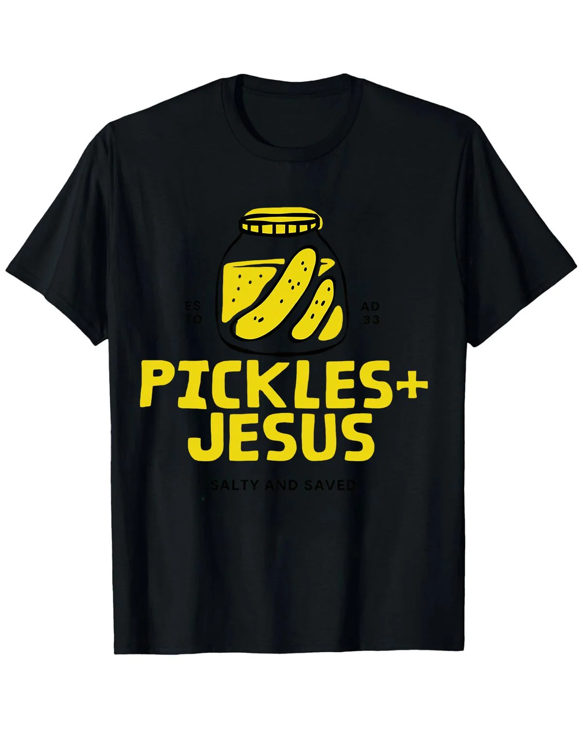 Pickles and Jesus Salty and Saved Summer Cotton Graphic T Shirt - Casual Vintage,Short Sleeve,Soft Fabric,Comfortable Fit