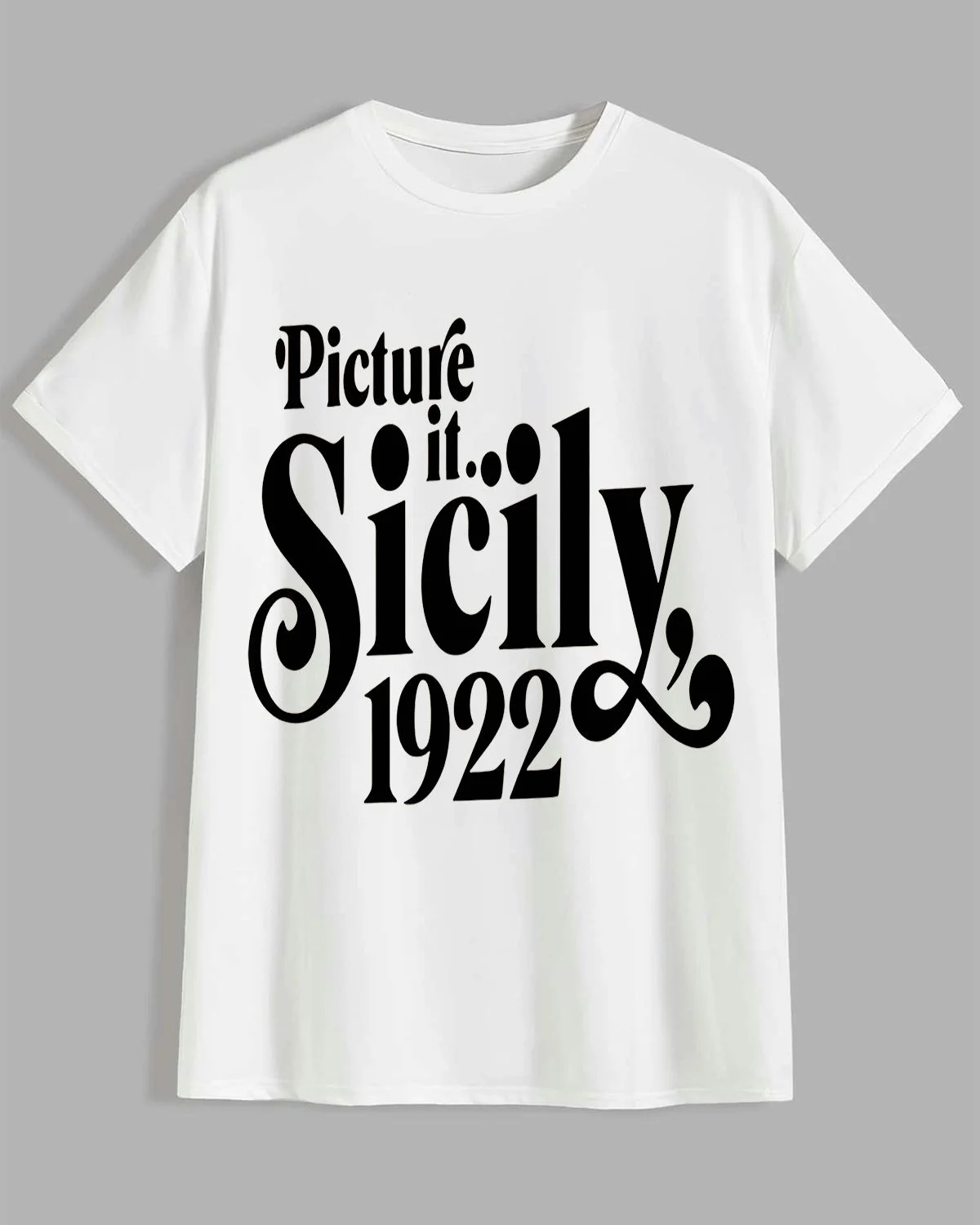 Picture It Sicily 1922 Summer Cotton Graphic T Shirt - Vintage Retro, Short Sleeve, Soft Fabric, Comfortable Fit