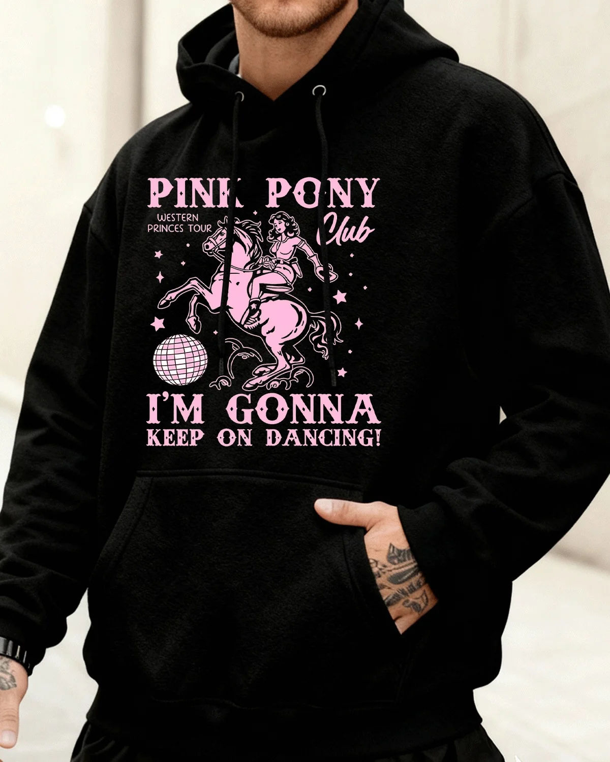 Pink Pony Club Western Princes Tour Cozy Cotton Graphic Hoodie-Vintage Retro,Long Sleeves,Soft Fabric,Comfortable Fit