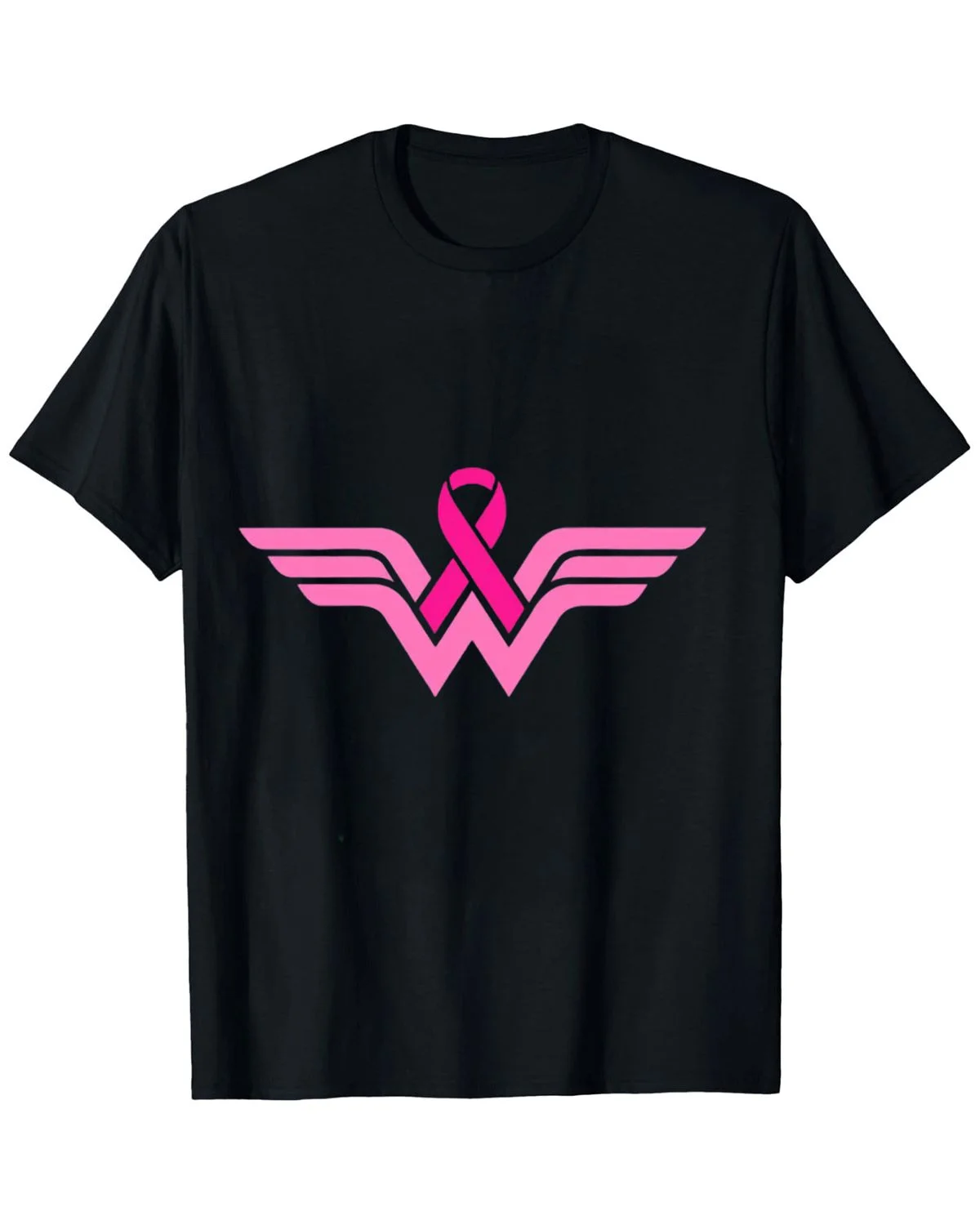 Pink Ribbon Wonder Woman Logo Summer Cotton Graphic T Shirt - Casual Vintage,Short Sleeve,Soft Fabric,Comfortable Fit