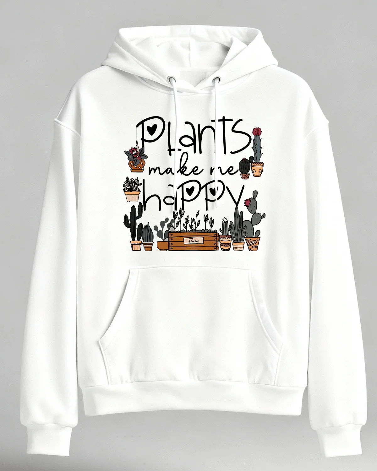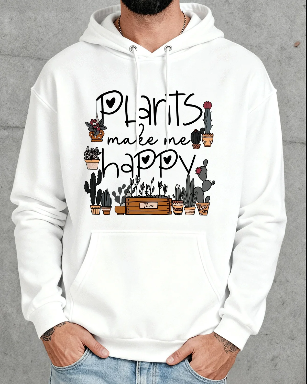 Plants Make Me Happy Cozy Cotton Graphic Hoodie-Casual Artistic,Long Sleeves,Soft Fabric,Comfortable Fit