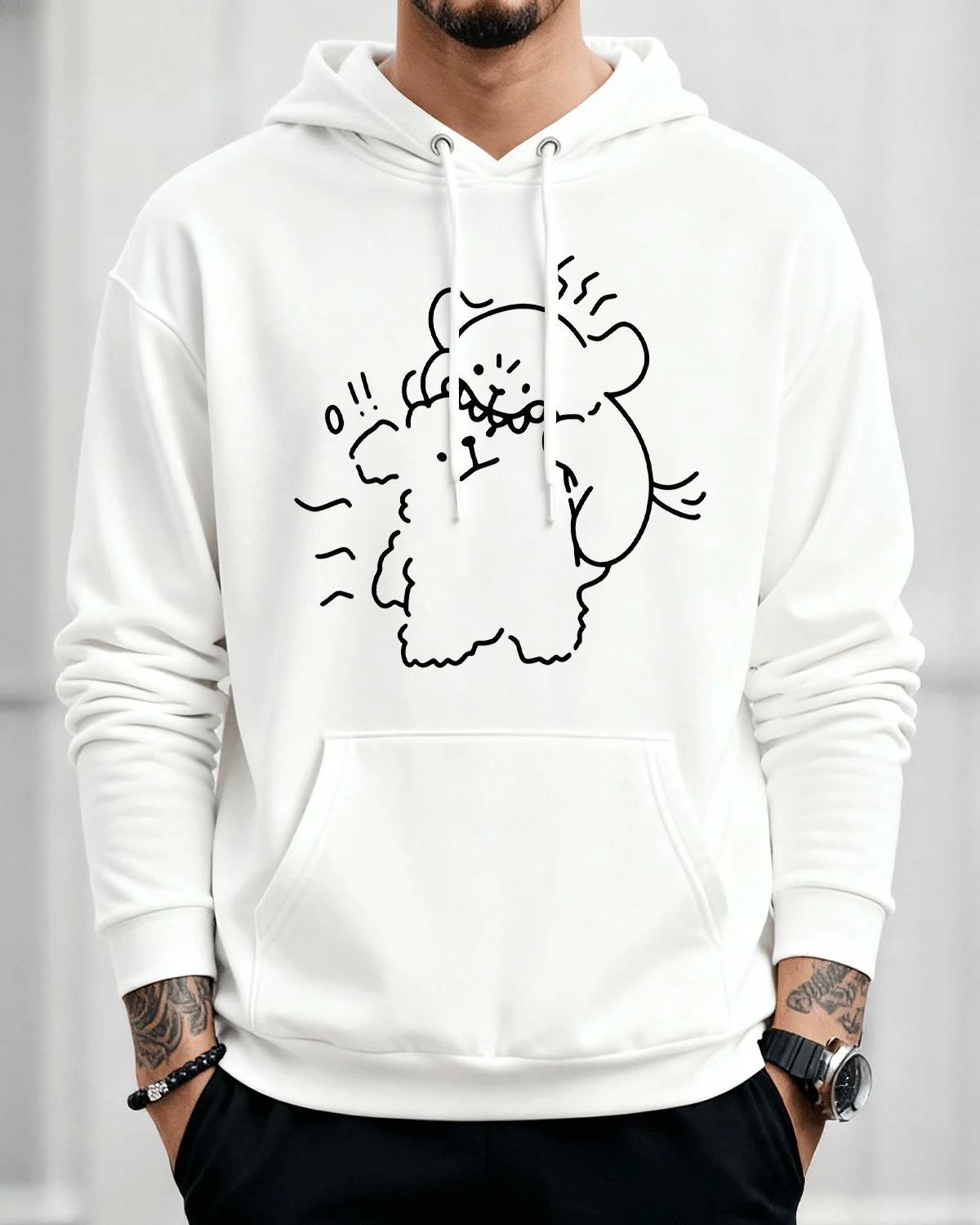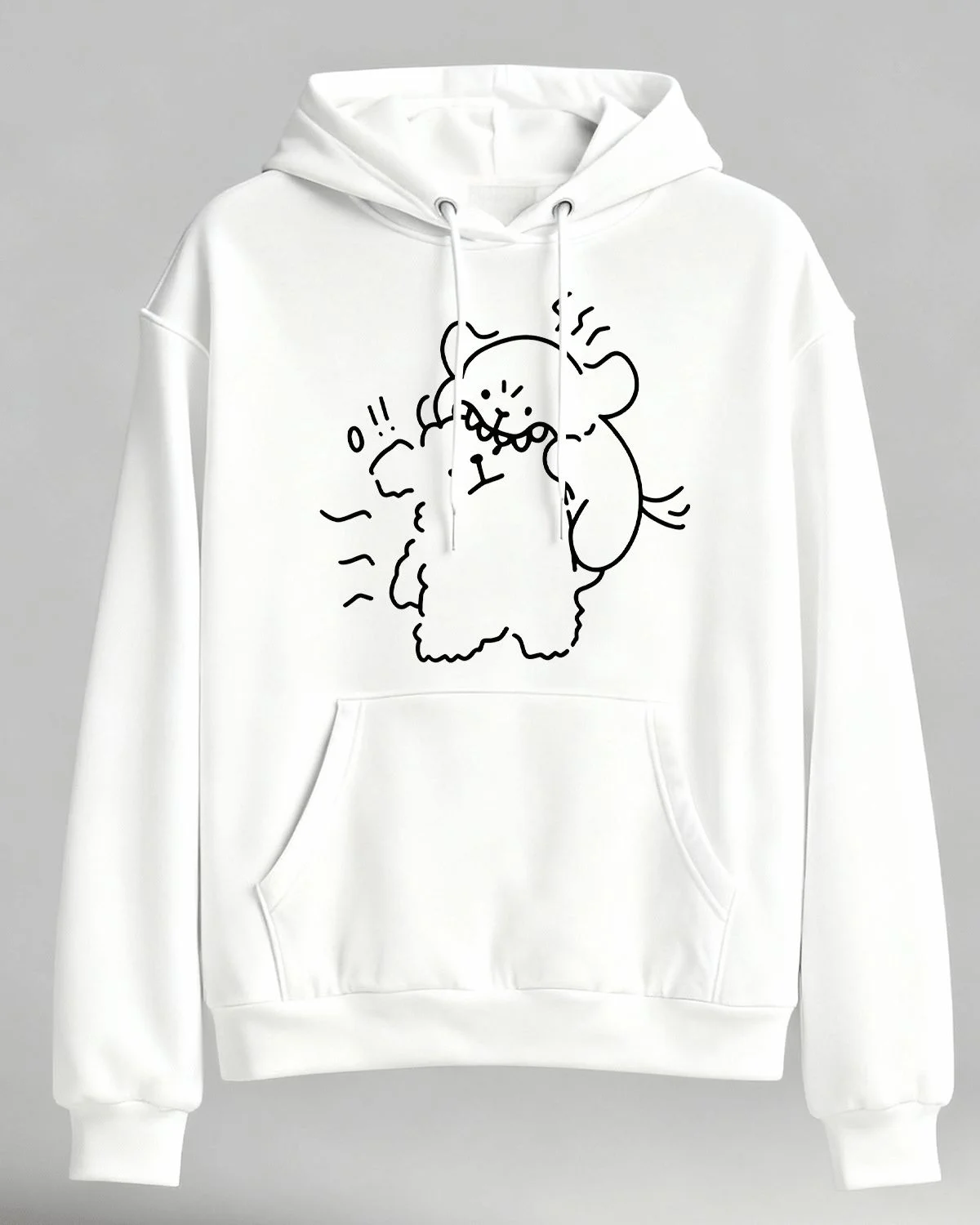 Playful Bear Hug Doodle Cozy Graphic Hoodie for Men and Women - Casual Artistic, Long Sleeve, Soft Fabric, Comfortable Fit