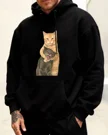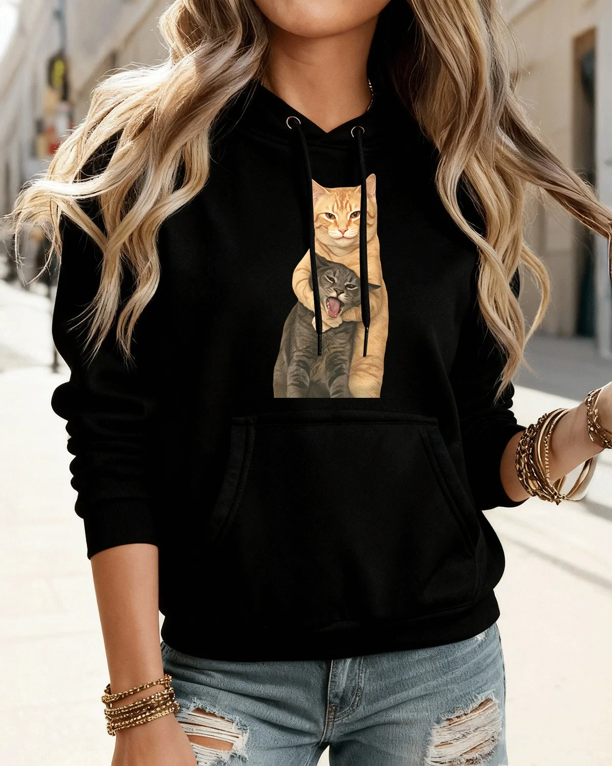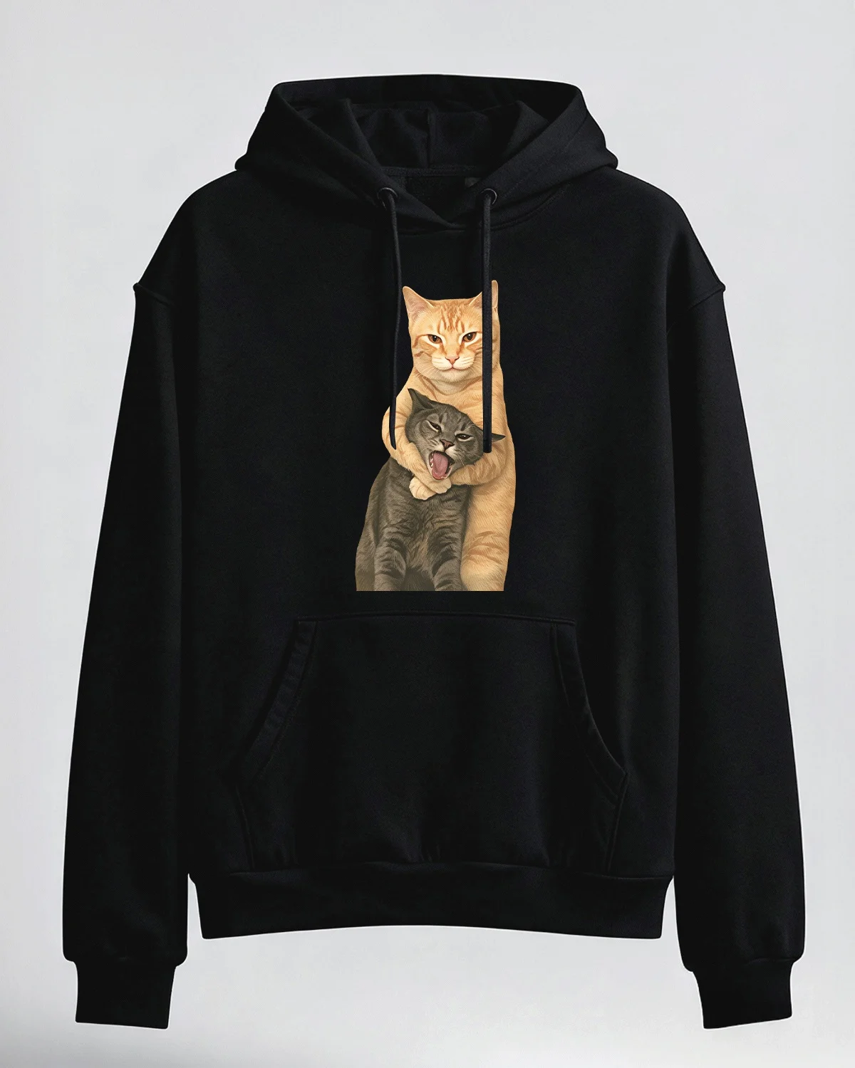Playful Cats Hug Cozy Cotton Graphic Hoodie-Casual Funny,Long Sleeves,Soft Fabric,Comfortable Fit