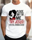 Please Don't Try Me Try Jesus Summer Cotton Graphic T Shirt - Casual Vintage, Short Sleeve, Soft Fabric, Comfortable Fit
