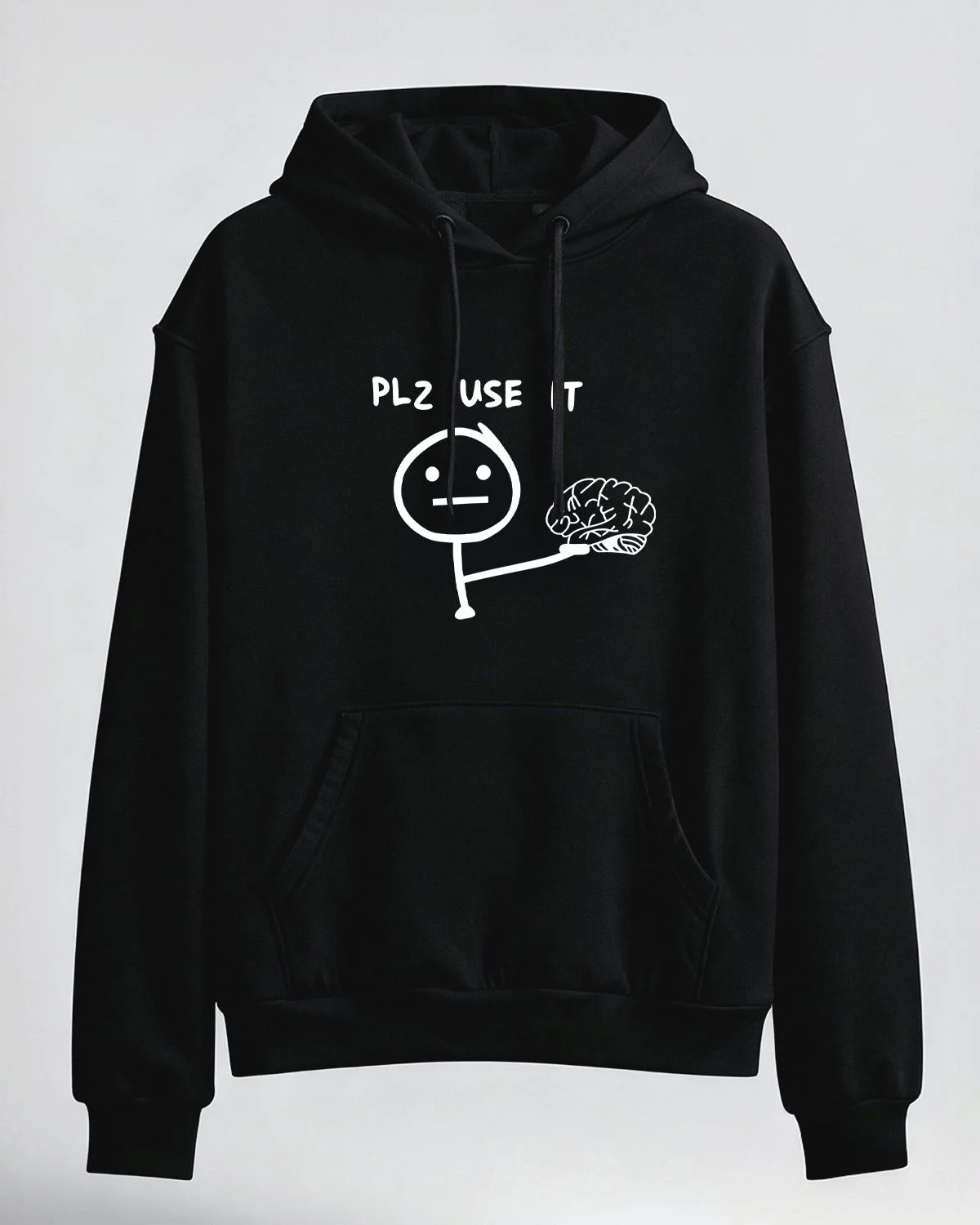 PLZ USE IT Stick Figure Brain Meme Cozy Cotton Graphic Hoodie with Pocket-Funny Retro,Long Sleeve,Soft Fabric,Comfortable Fit