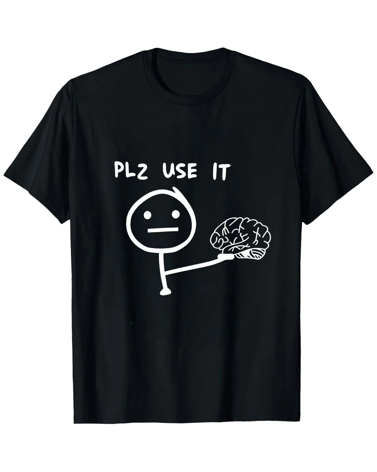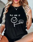 PLZ USE IT Stick Figure Brain Meme Summer Cotton Graphic T Shirt - Funny Retro,Short Sleeve,Soft Fabric,Comfortable Fit