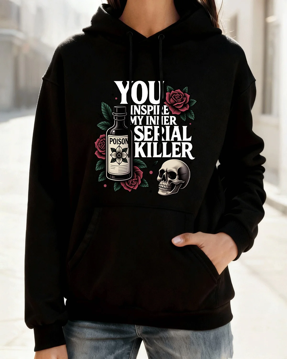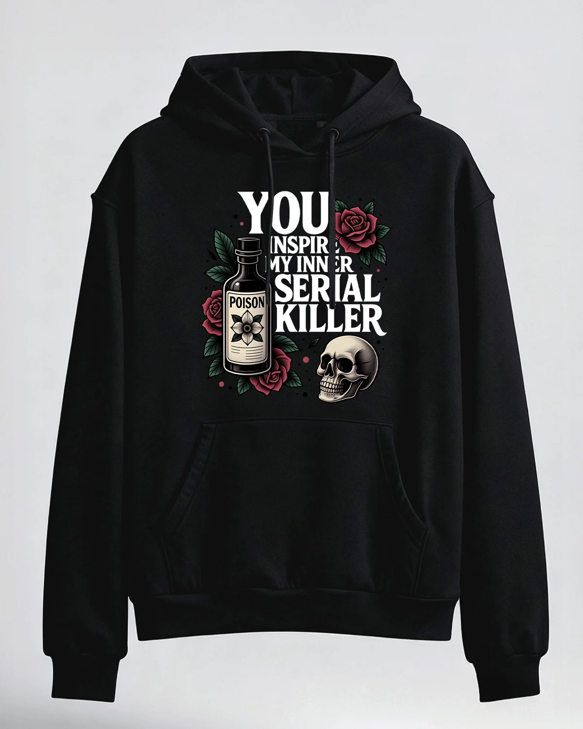 Poison Roses and Skull Cozy Cotton Graphic Hoodie-Vintage Artistic,Long Sleeves,Soft Fabric,Comfortable Fit