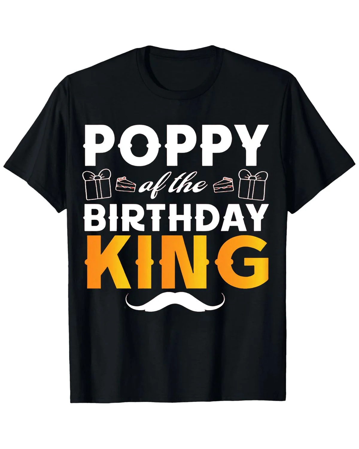Poppy of the Birthday King with Gifts and Cake Summer Cotton Graphic T Shirt - Casual Vintage, Short Sleeve, Soft Fabric, Comfortable Fit