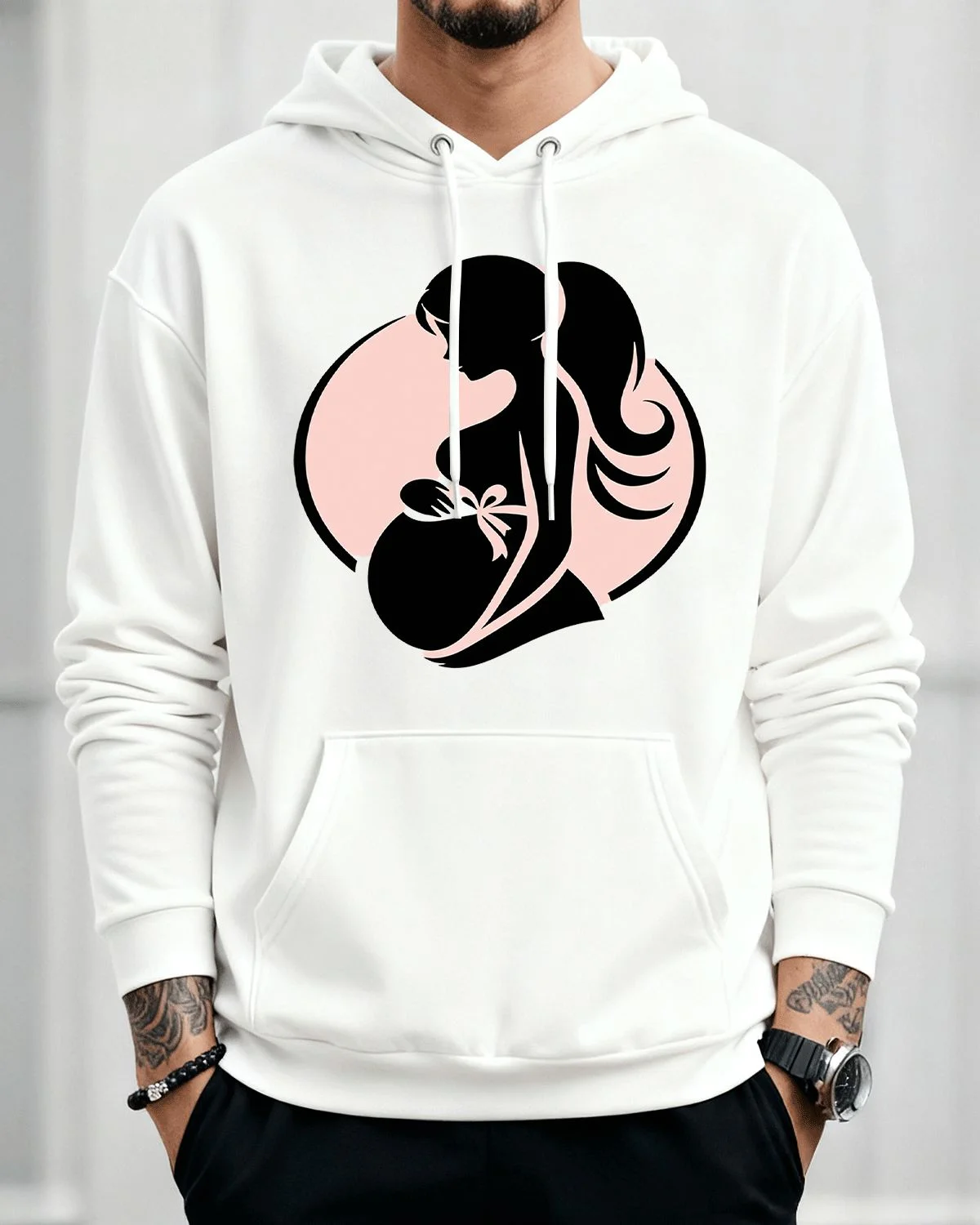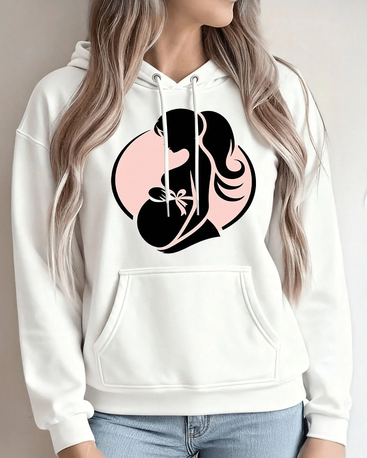 Pregnant Mom Silhouette Cozy Graphic Hoodie for Men and Women - Casual Classic, Long Sleeve, Soft Fabric, Comfortable Fit