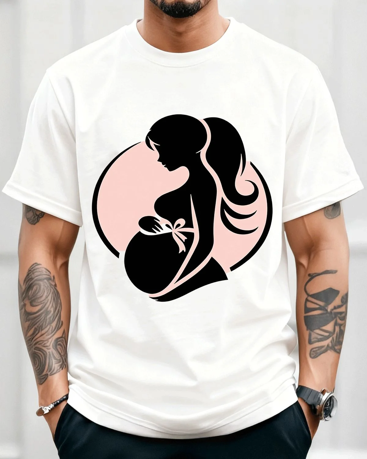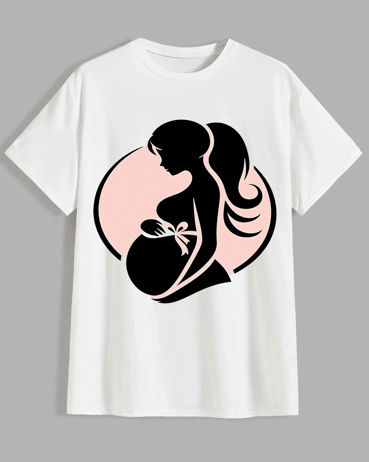 Pregnant Mom Silhouette Summer Cotton Graphic T Shirt - Casual Classic, Short Sleeve, Soft Fabric, Comfortable Fit