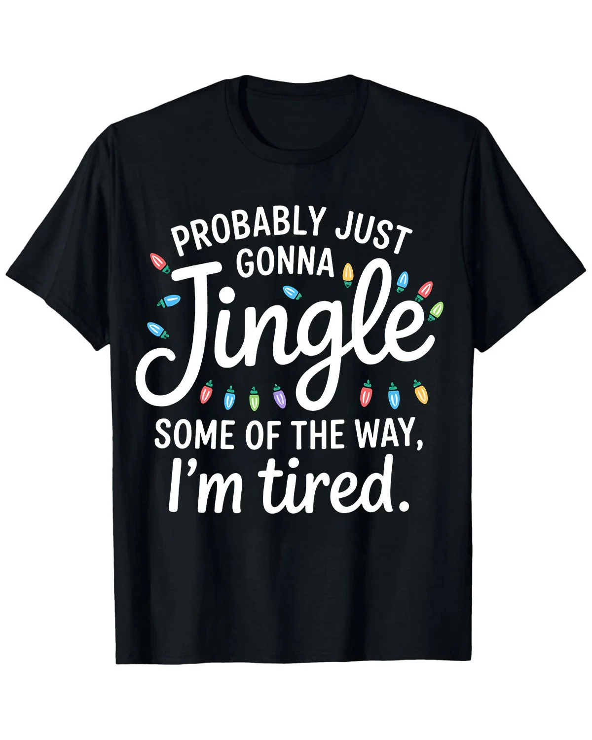 Probably Just Gonna Jingle Christmas Lights Summer Cotton Graphic T Shirt - Funny Casual, Short Sleeve, Soft Fabric, Comfortable Fit