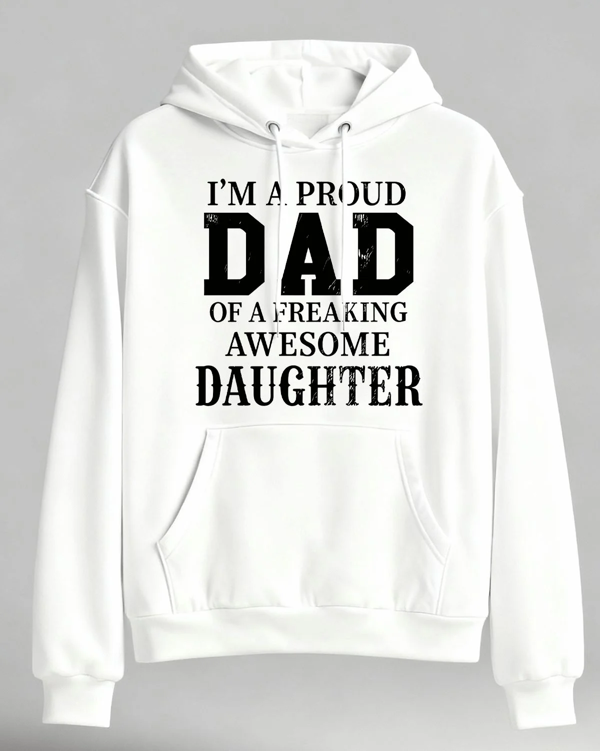Proud Dad of a Freaking Awesome Daughter Cozy Graphic Hoodie for Men and Women - Casual Vintage, Long Sleeve, Soft Fabric, Comfortable Fit