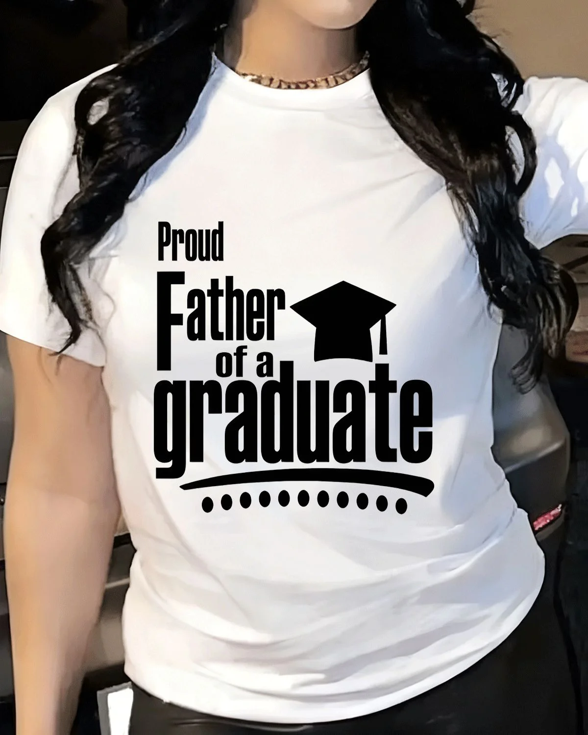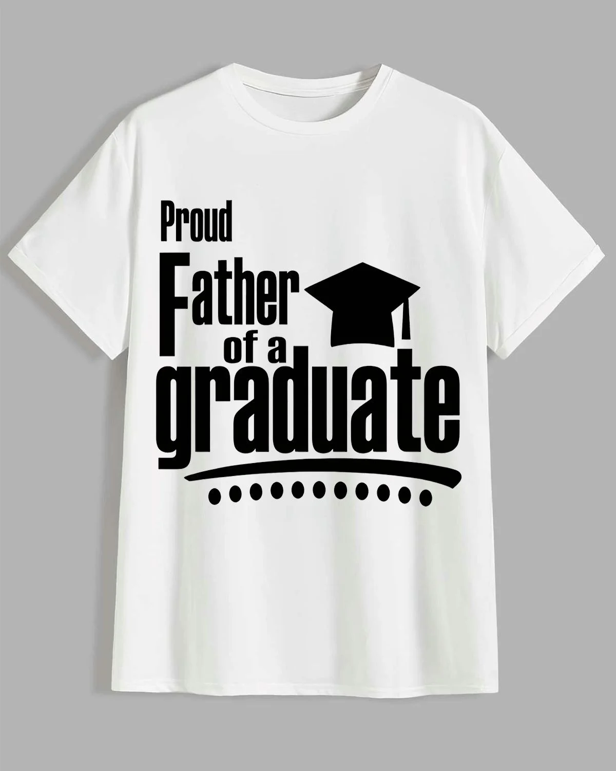 Proud Father of a Graduate Summer Cotton Graphic T Shirt - Classic Vintage, Short Sleeve, Soft Fabric, Comfortable Fit