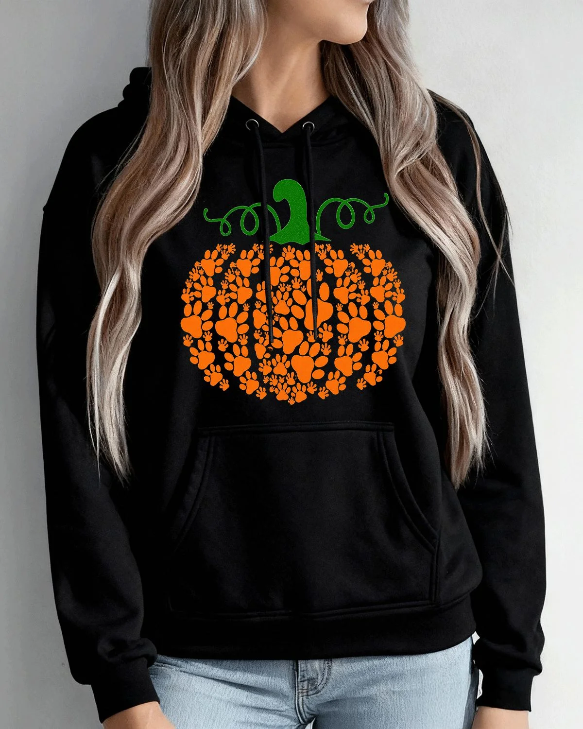 Pumpkin Made of Paw Prints Summer Cozy Graphic Hoodie-Casual Artistic,Long Sleeve,Soft Fabric,Comfortable Fit
