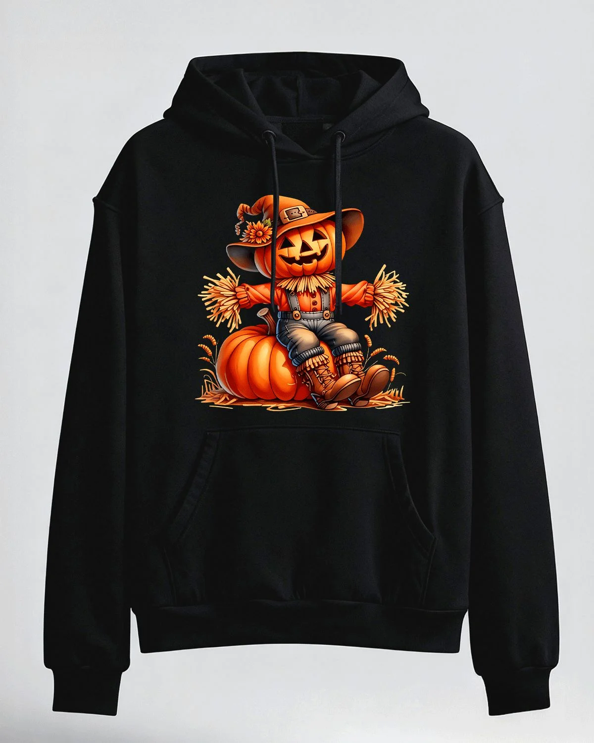 Pumpkin Scarecrow Halloween Autumn Harvest Summer Cozy Graphic Hoodie-Casual Vintage,Long Sleeve,Soft Fabric,Comfortable Fit