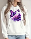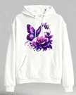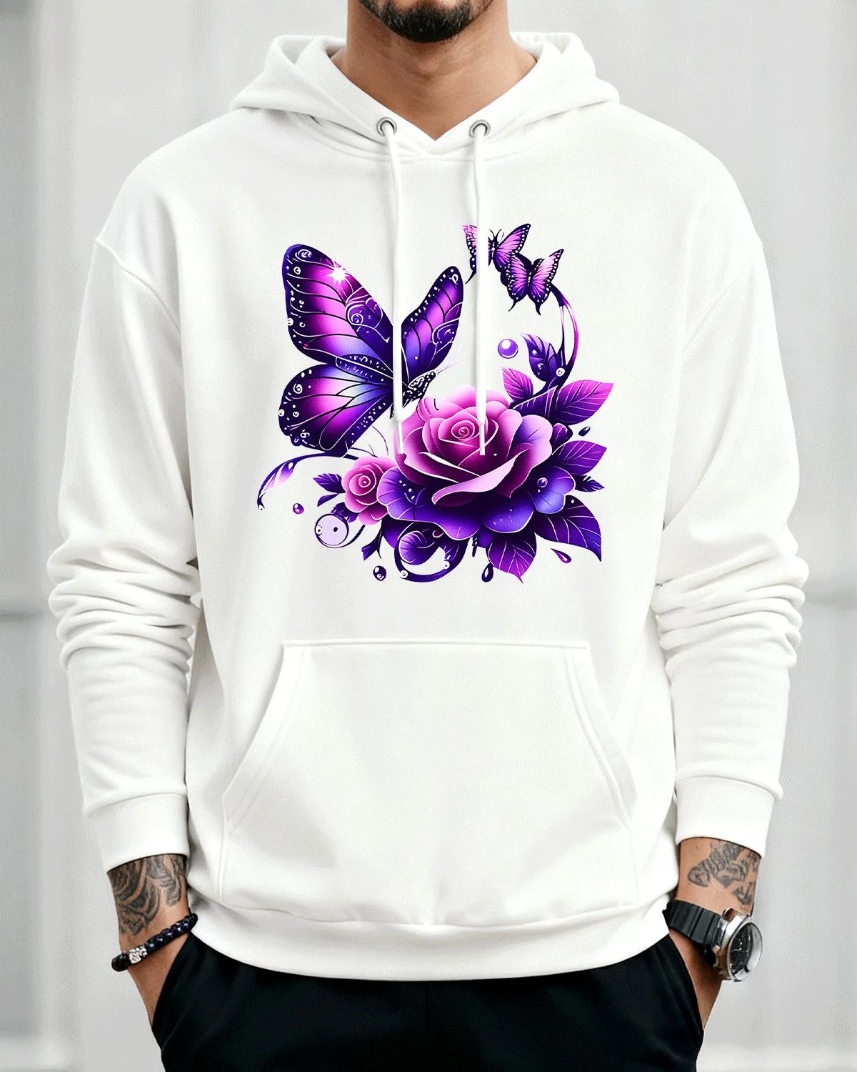 Purple Butterfly and Rose Cozy Graphic Hoodie for Men and Women - Artistic Vintage, Long Sleeve, Soft Fabric, Comfortable Fit