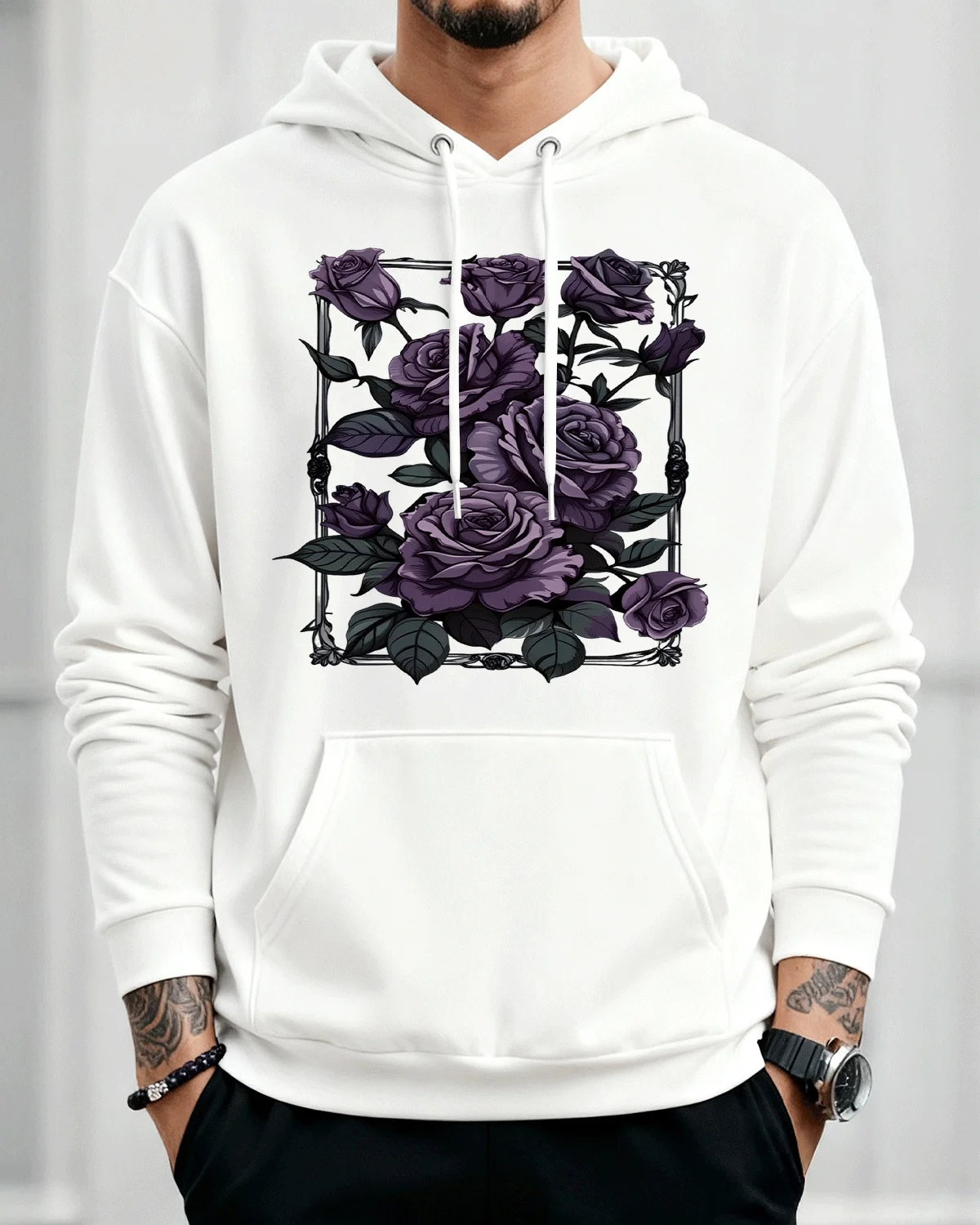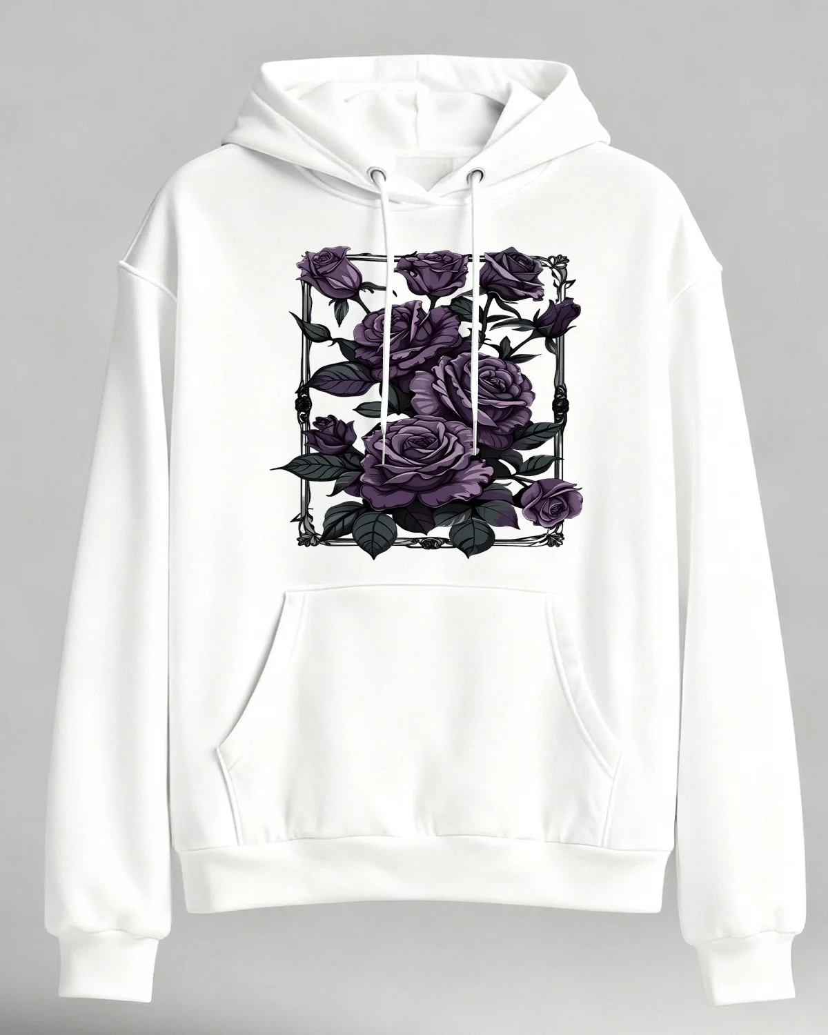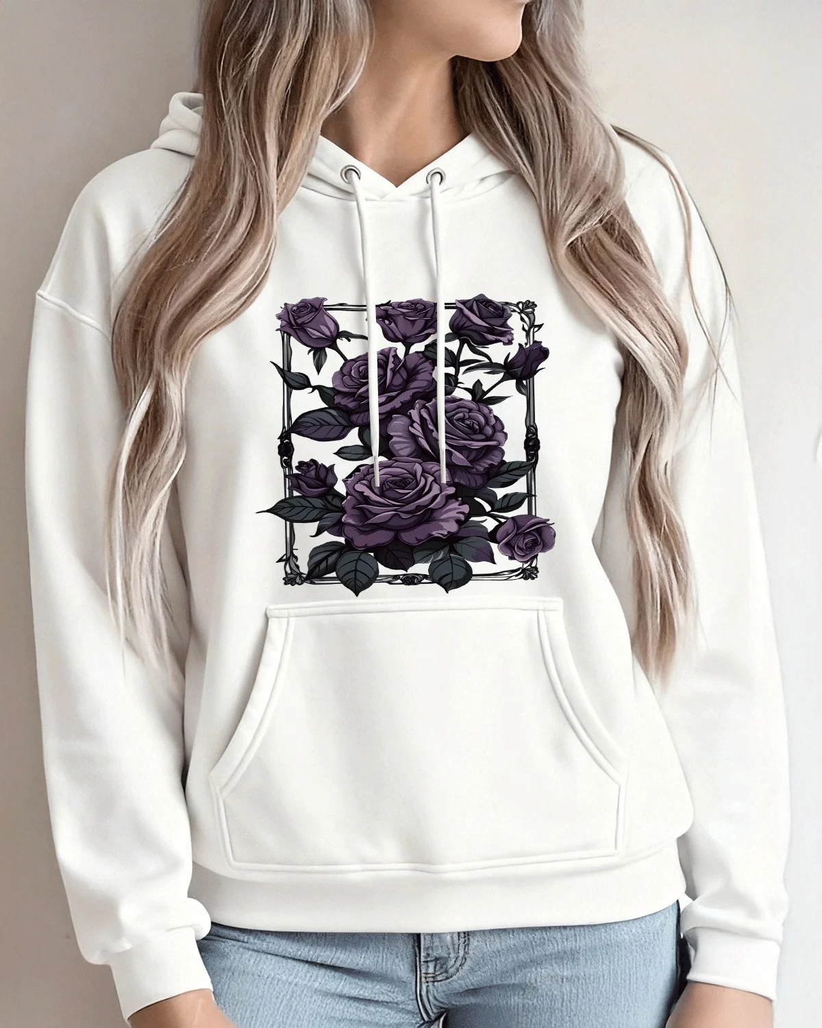 Purple Rose Bouquet Cozy Cotton Graphic Hoodie-Vintage Artistic,Long Sleeves,Soft Fabric,Comfortable Fit