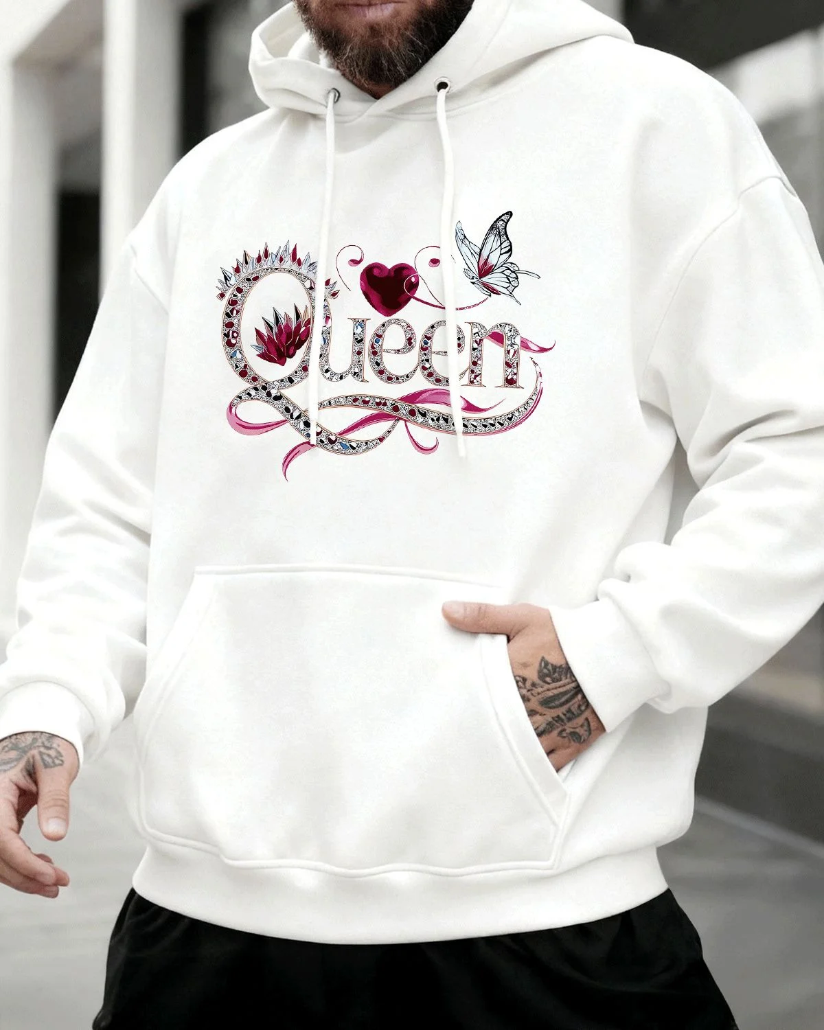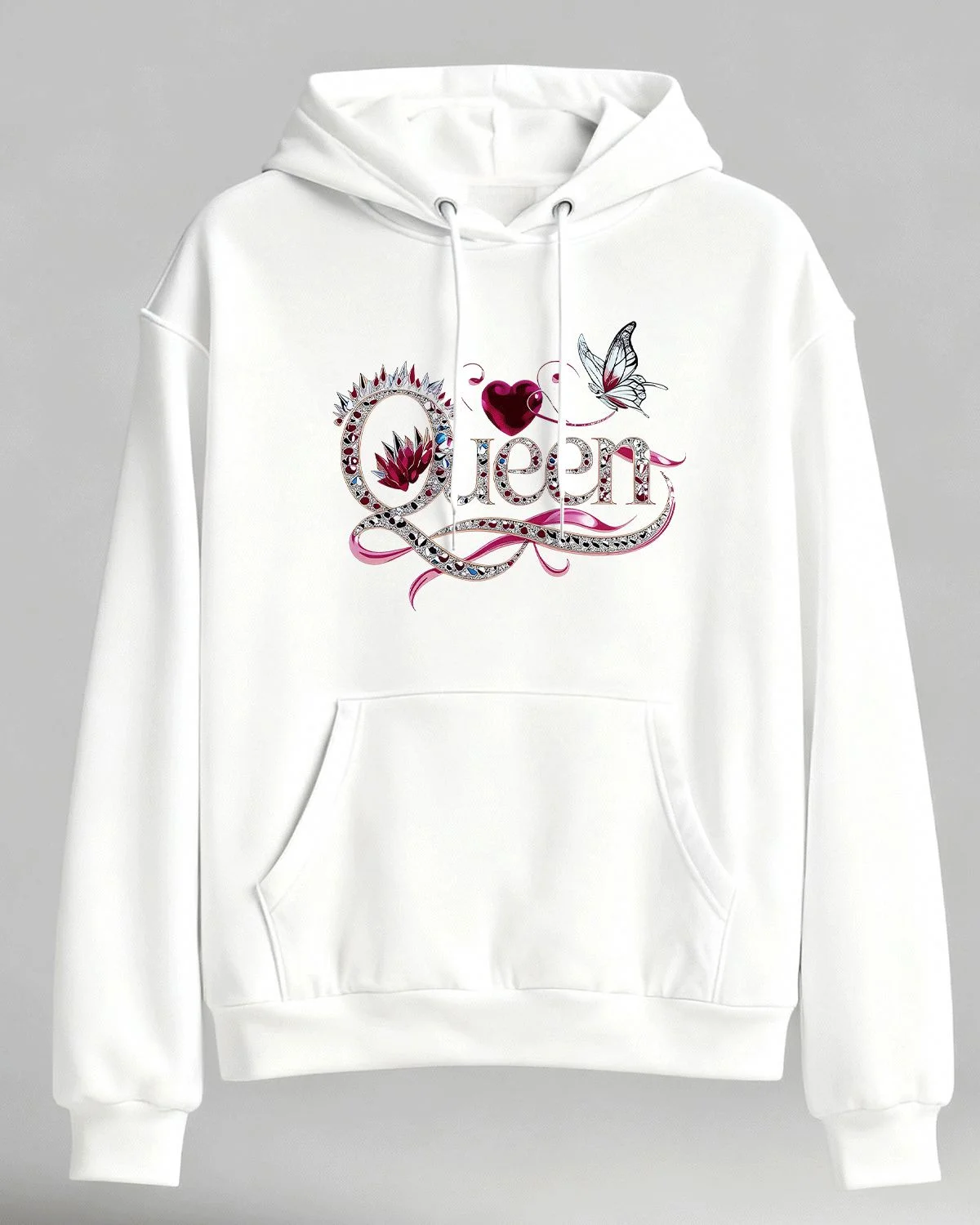 Queen Heart Butterfly Jewel Cozy Cotton Graphic Hoodie with Pocket-Chic Vintage,Long Sleeve,Soft Fabric,Comfortable Fit