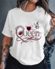 Christmas Chickens and Reindeer in Santa Hats Summer Cotton Graphic T Shirt - Funny Retro, Short Sleeve, Soft Fabric, Comfortable Fit