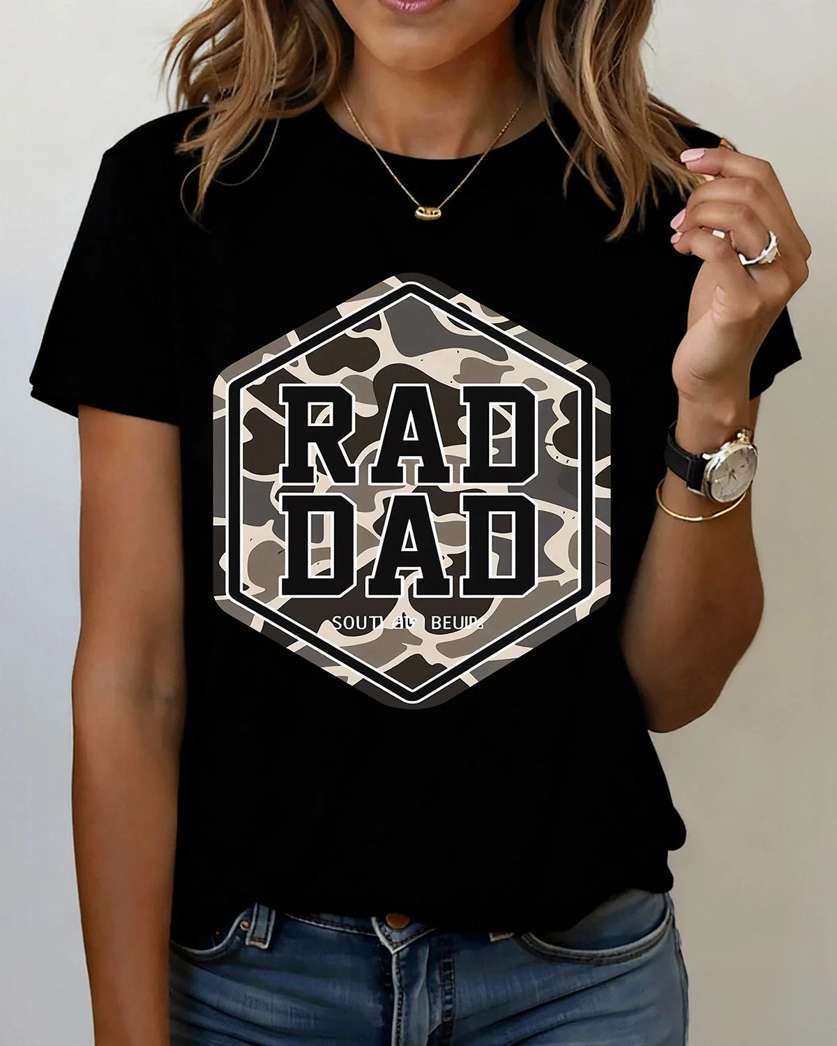 Rad Dad Camo Summer Cotton Graphic T Shirt - Casual Cool, Short Sleeve, Soft Fabric, Comfortable Fit