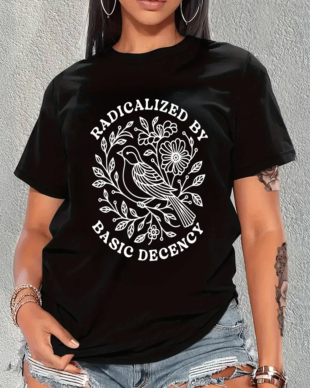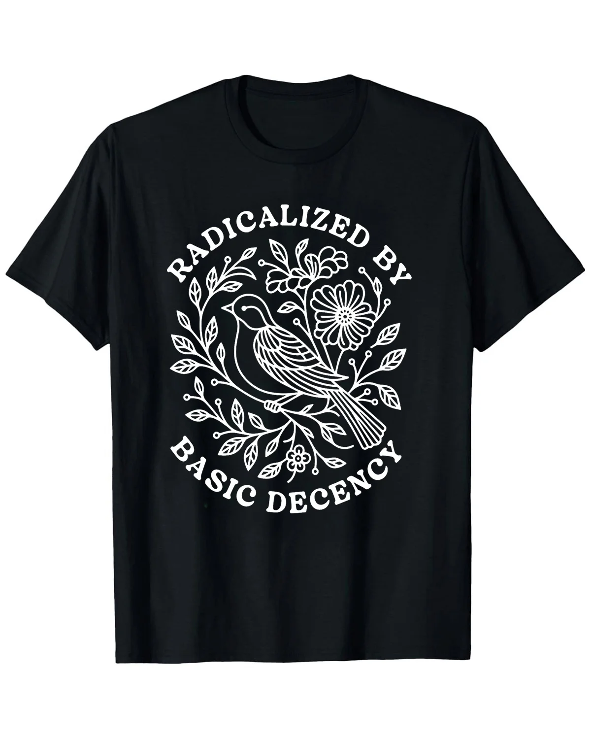 Radicalized by Basic Decency Bird Floral Summer Cotton Graphic T Shirt-Vintage Artistic,Short Sleeve,Soft Fabric,Comfortable Fit
