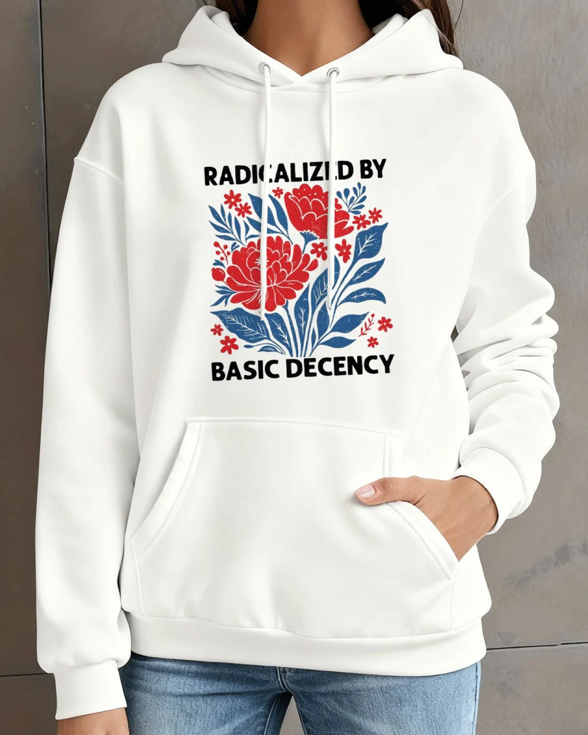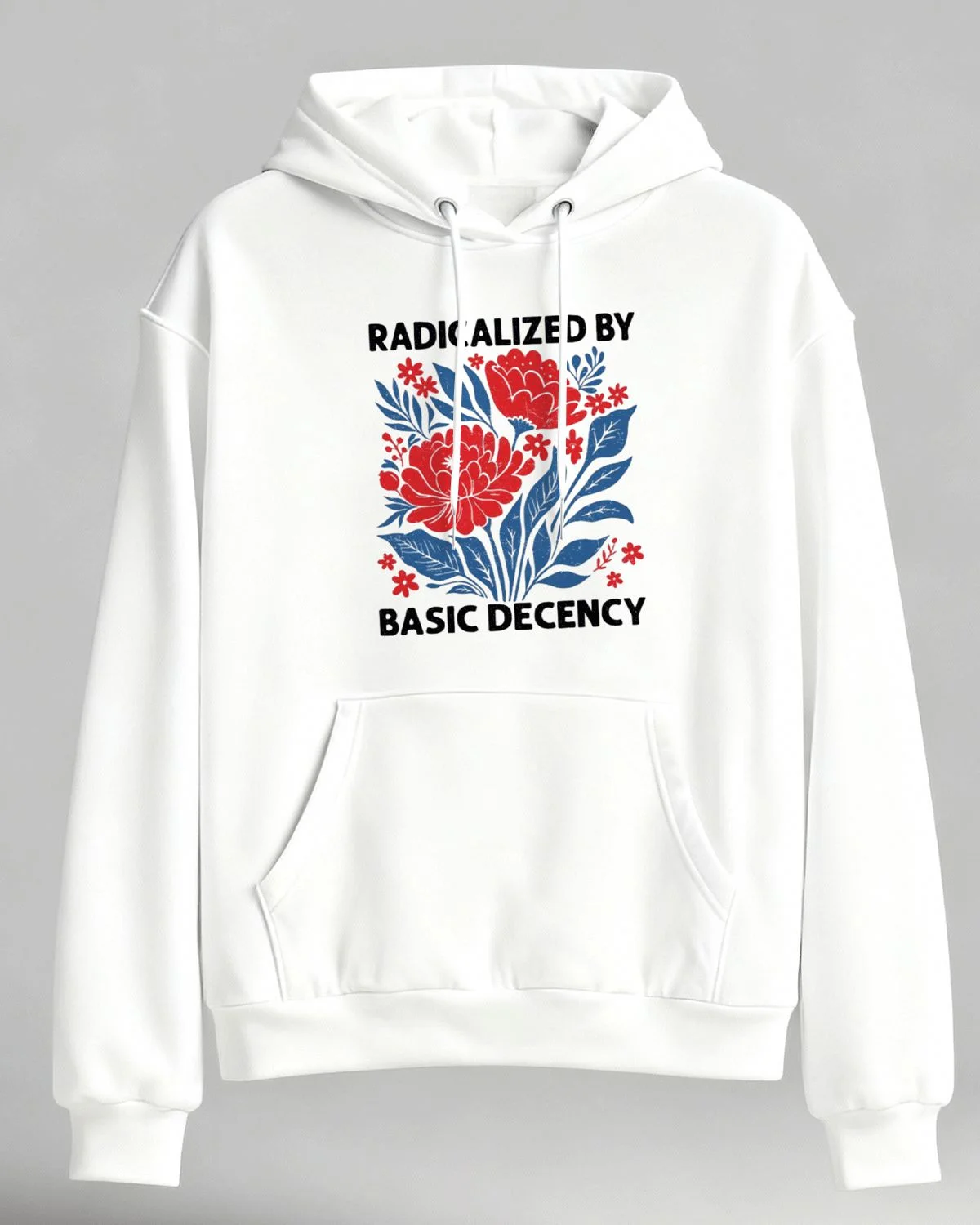 Radicalized by Basic Decency Floral Cozy Cotton Graphic Hoodie with Pocket-Vintage Artistic,Long Sleeve,Soft Fabric,Comfortable Fit