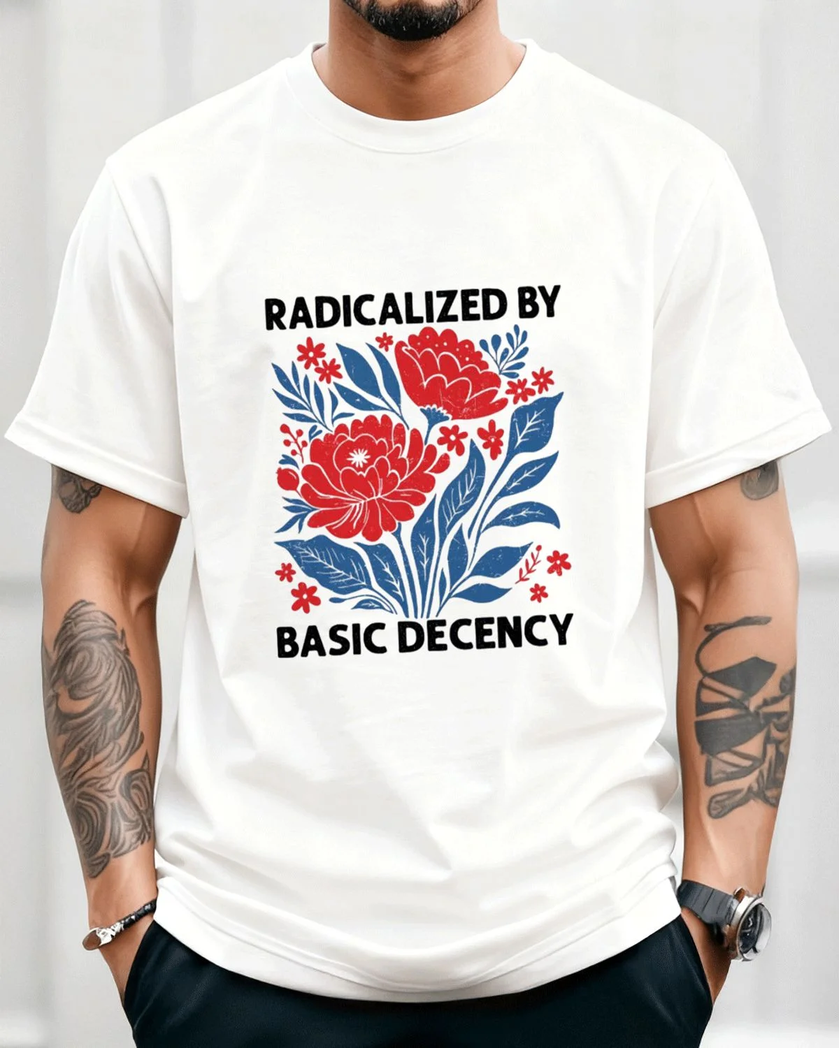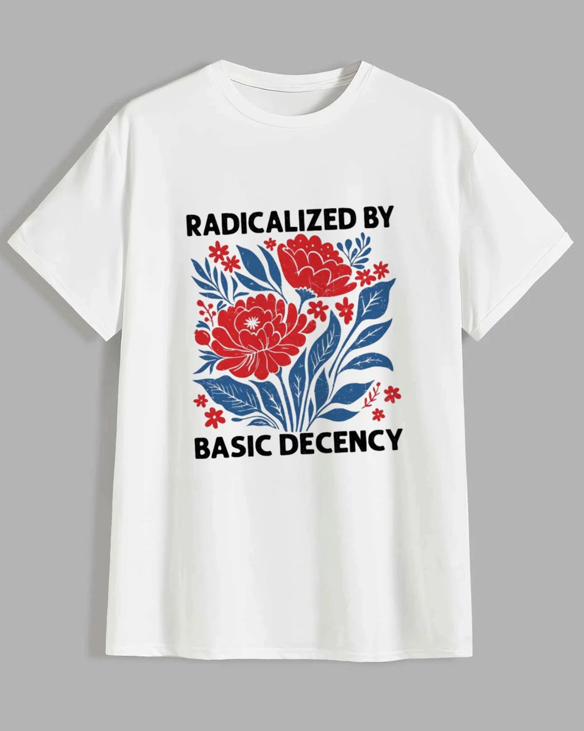 Radicalized by Basic Decency Floral Summer Cotton Graphic T Shirt - Vintage Artistic,Short Sleeve,Soft Fabric,Comfortable Fit