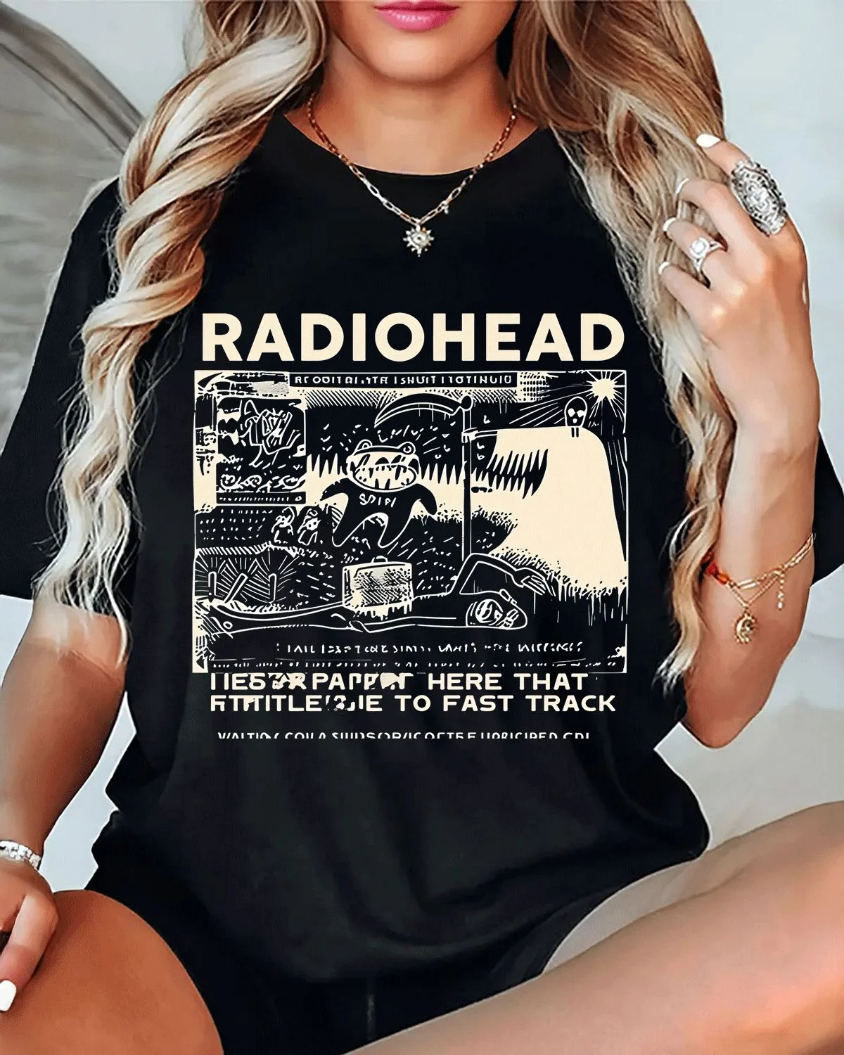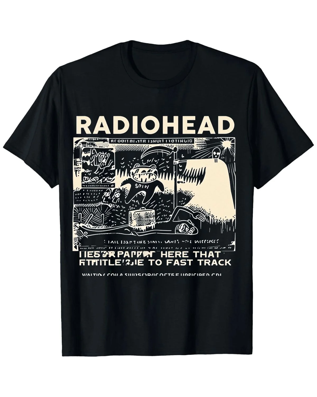 Radiohead Bear Line Art Summer Cotton Graphic T Shirt - Vintage Artistic,Short Sleeve,Soft Fabric,Comfortable Fit