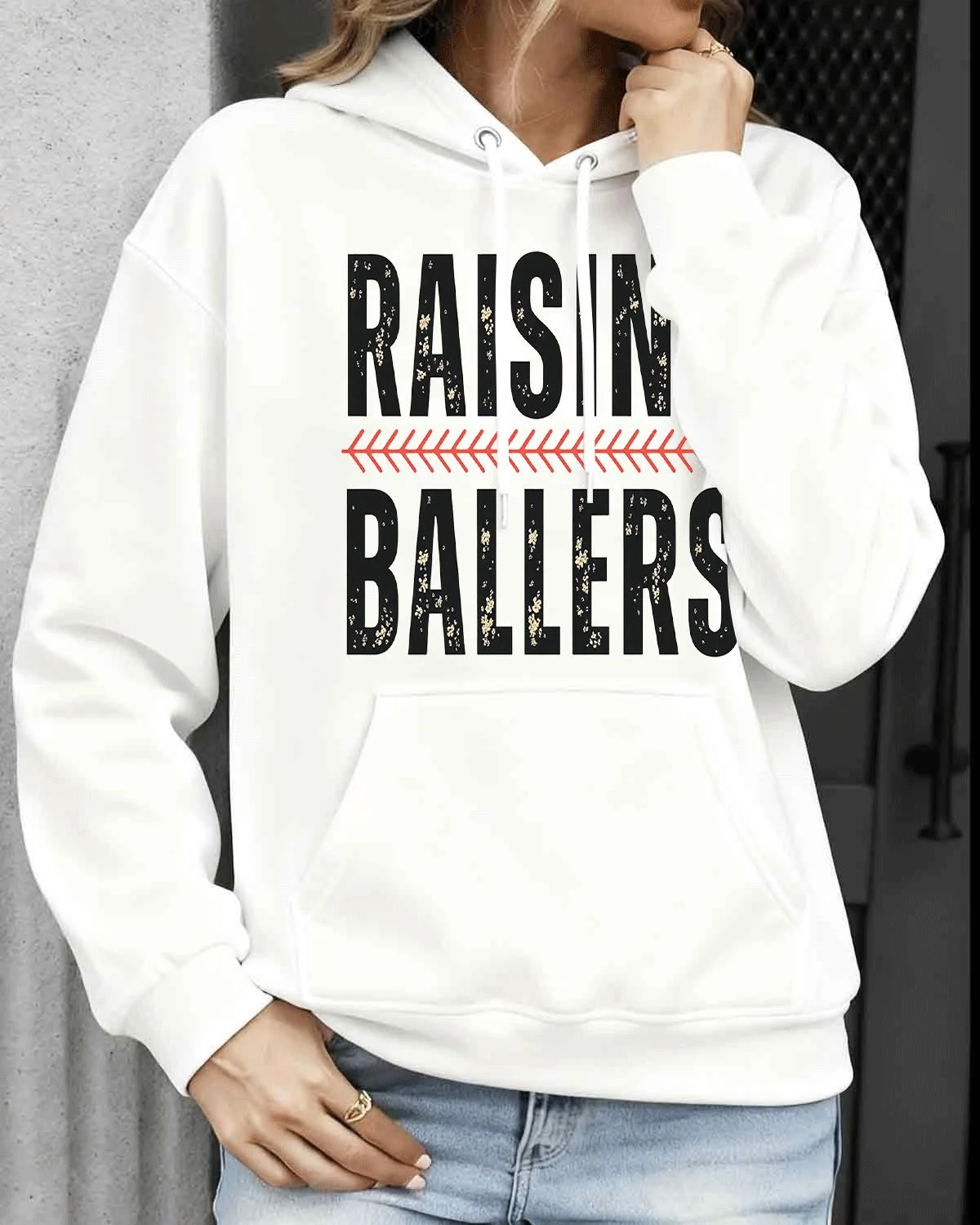 Raising Ballers Mom Cozy Graphic Hoodie for Men and Women - Sporty Vintage, Long Sleeve, Soft Fabric, Comfortable Fit