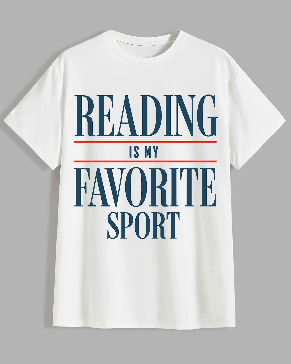 Reading Is My Favorite Sport Summer Cotton Graphic T Shirt - Casual Vintage,Short Sleeve,Soft Fabric,Comfortable Fit