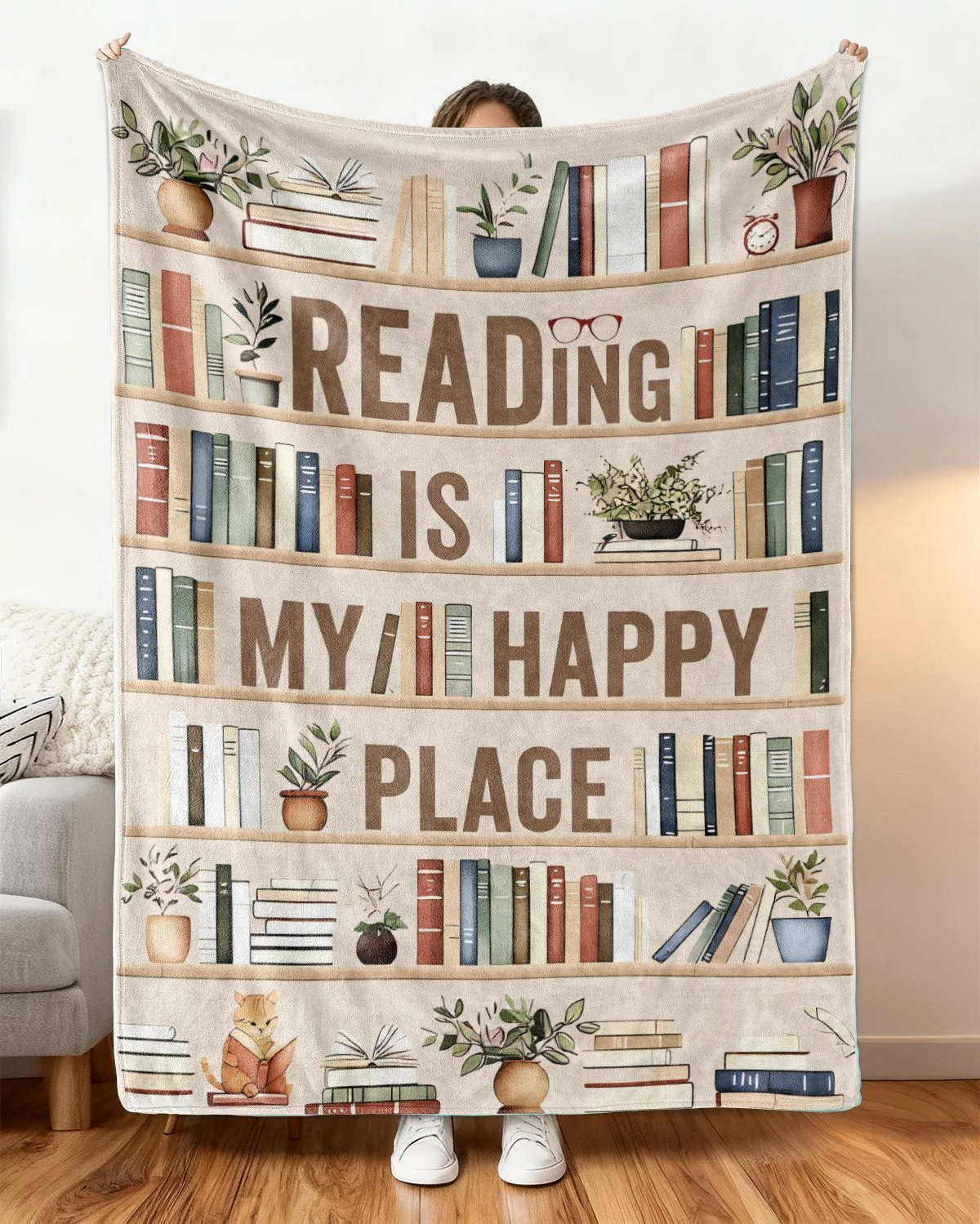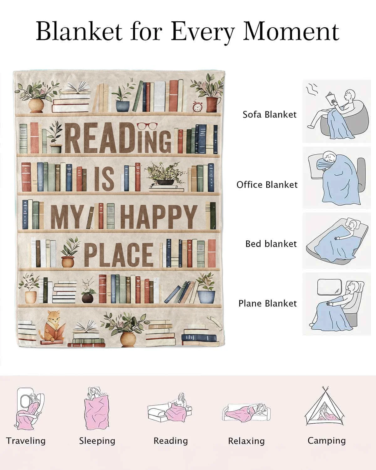 Reading is My Happy Place Motivational Blanket-Cozy Classic,Plush,Warm,Lightweight,For Couch,Bedroom Use
