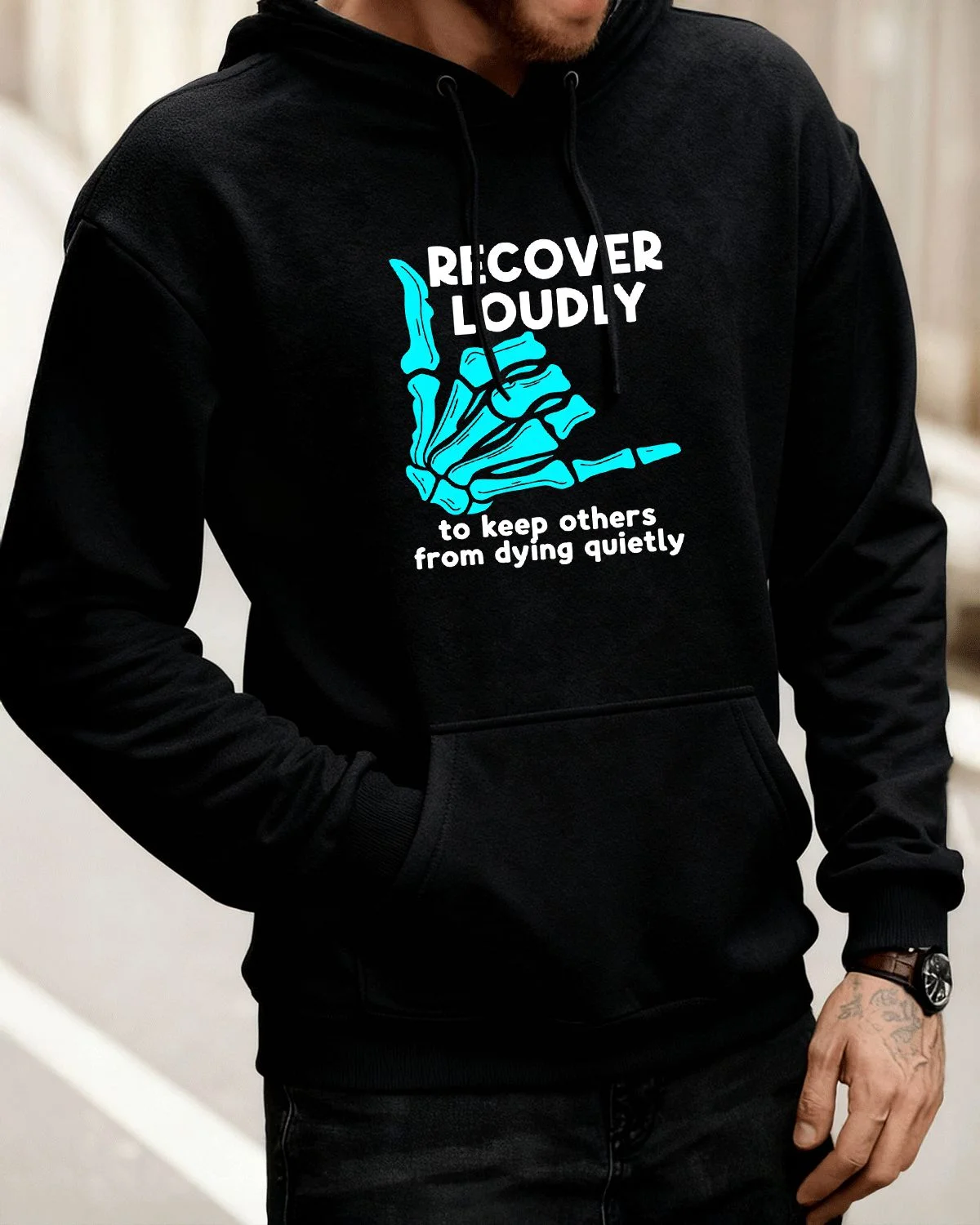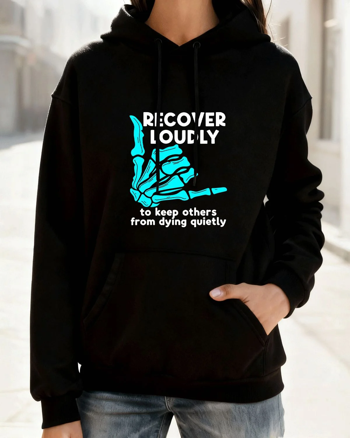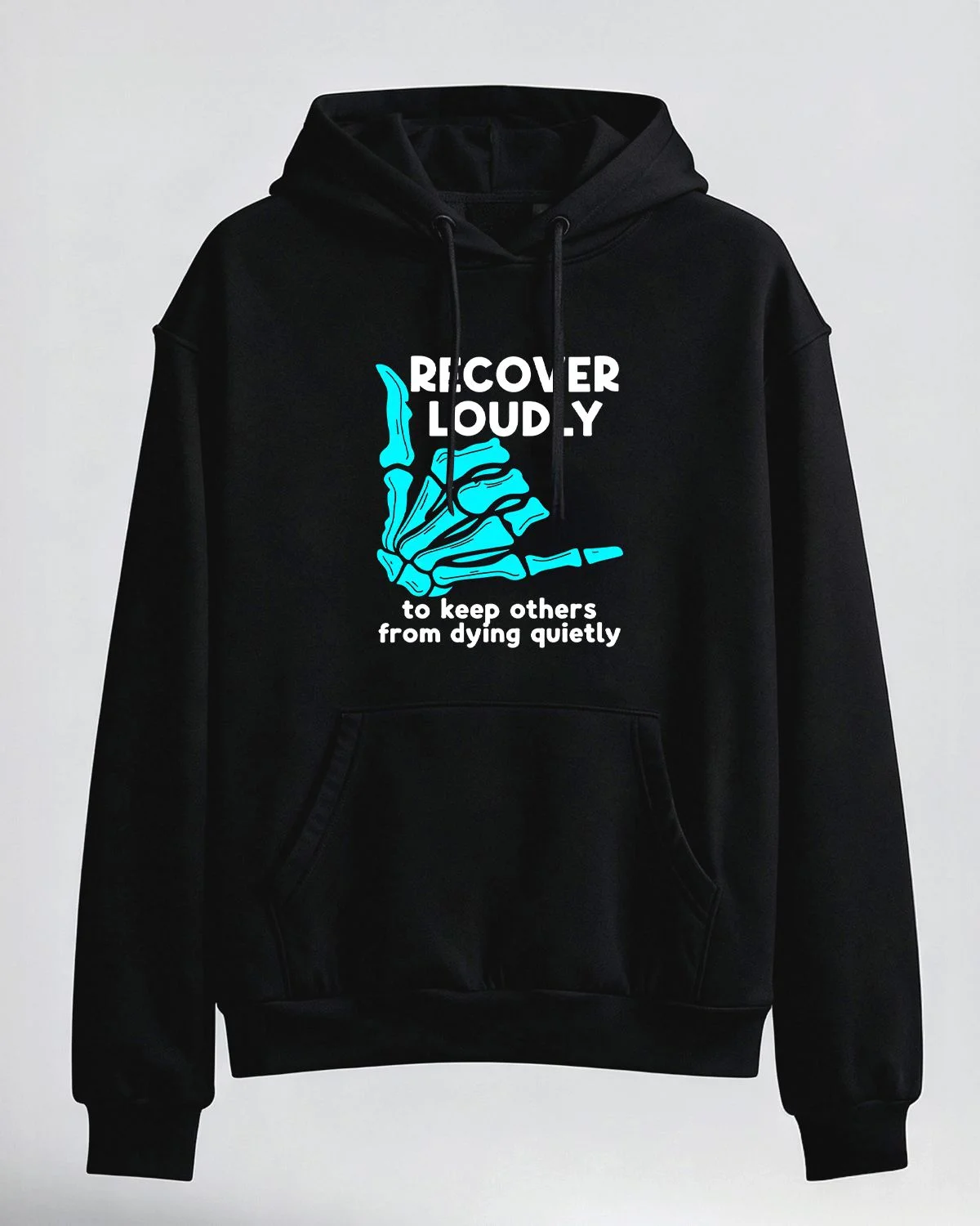 Recover Loudly Skeleton Hand Cozy Cotton Graphic Hoodie with Pocket-Casual Artistic,Long Sleeve,Soft Fabric,Comfortable Fit