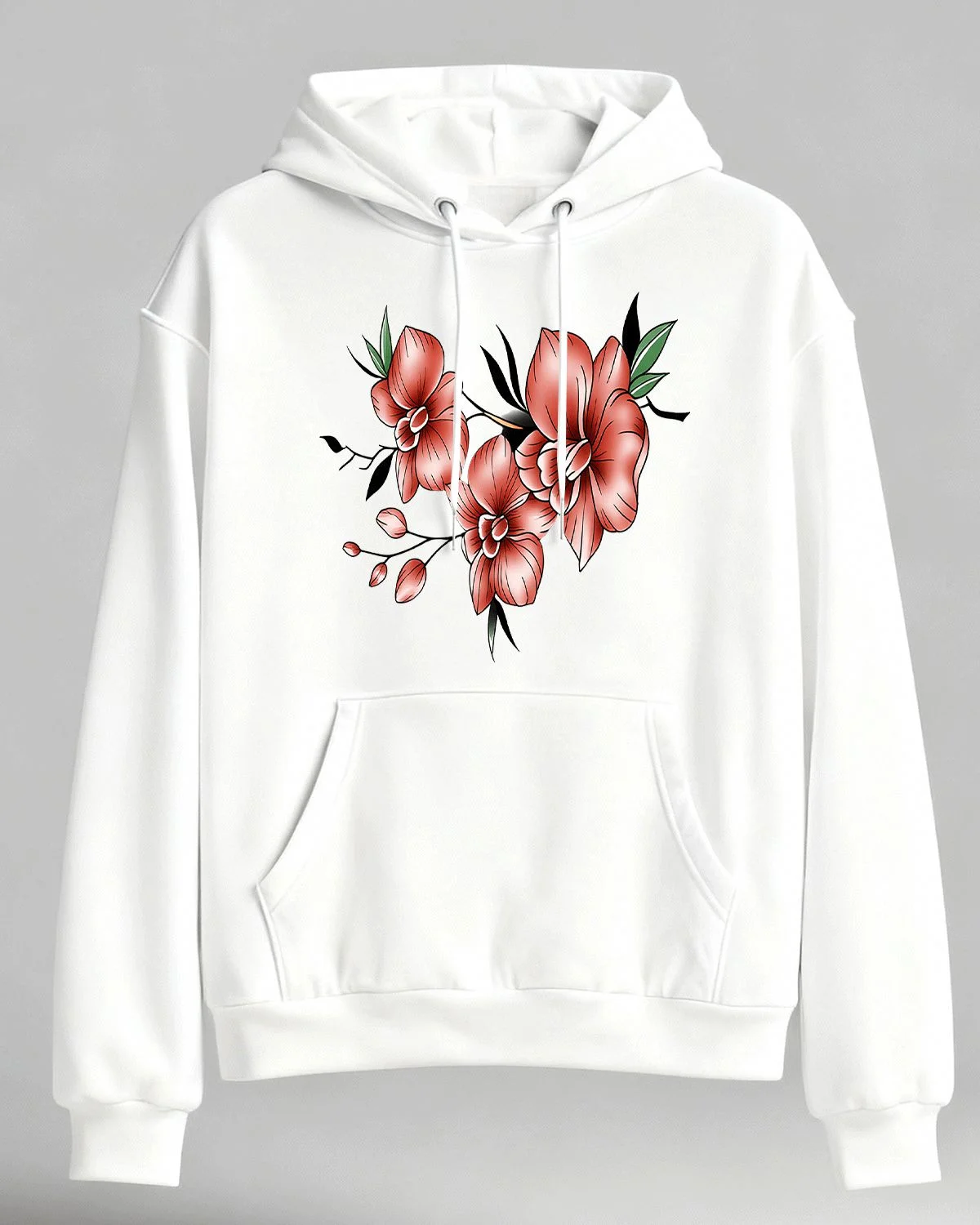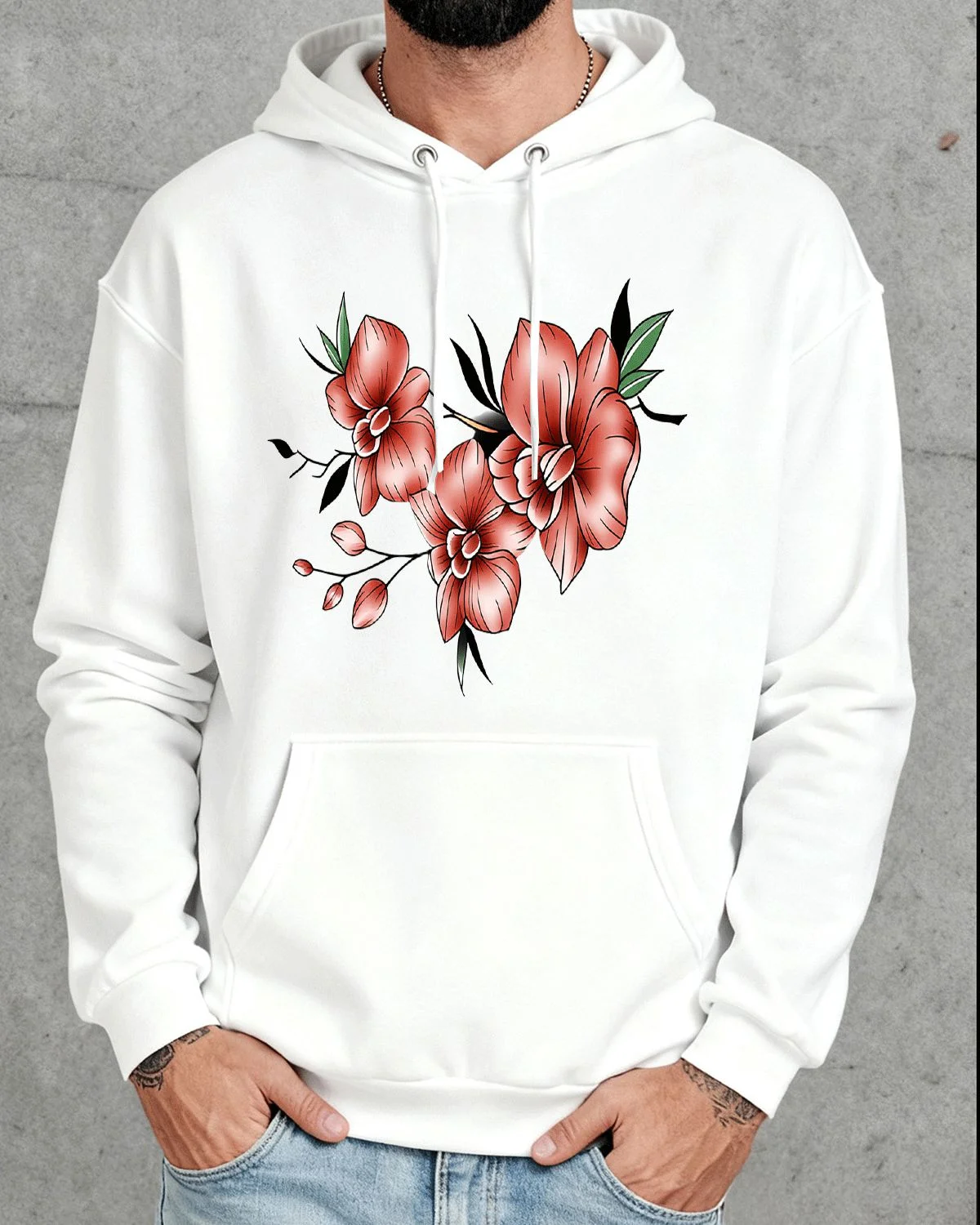 Red Hibiscus Floral Bouquet Cozy Graphic Hoodie for Men and Women - Vintage Artistic, Long Sleeve, Soft Fabric, Comfortable Fit