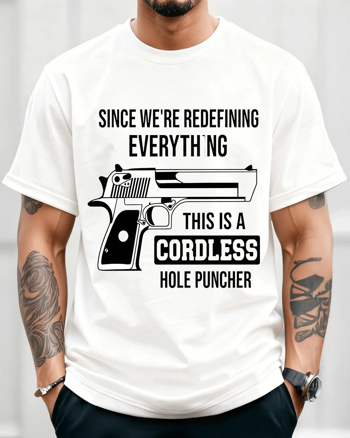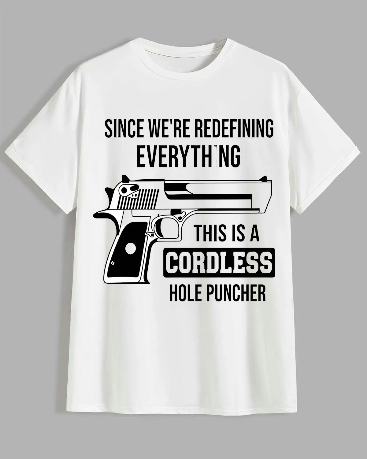 Redefining Everything Cordless Hole Puncher Dad Summer Cotton Graphic T Shirt - Funny Retro, Short Sleeve, Soft Fabric, Comfortable Fit