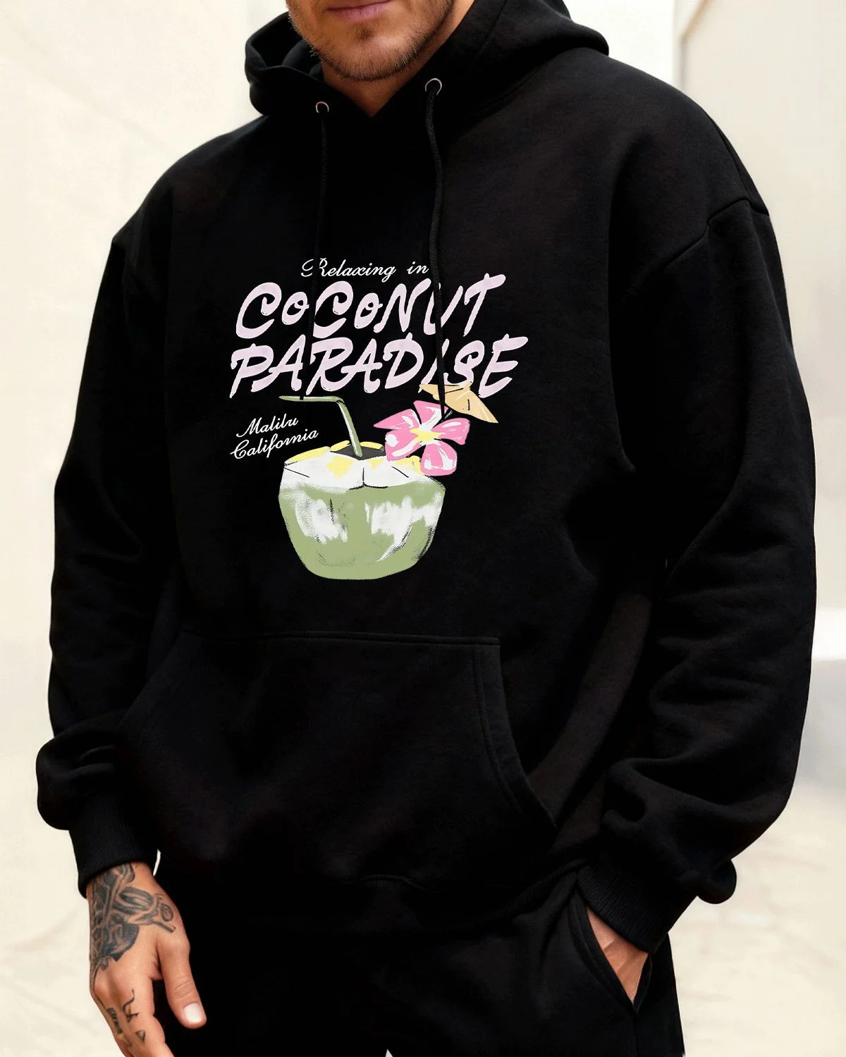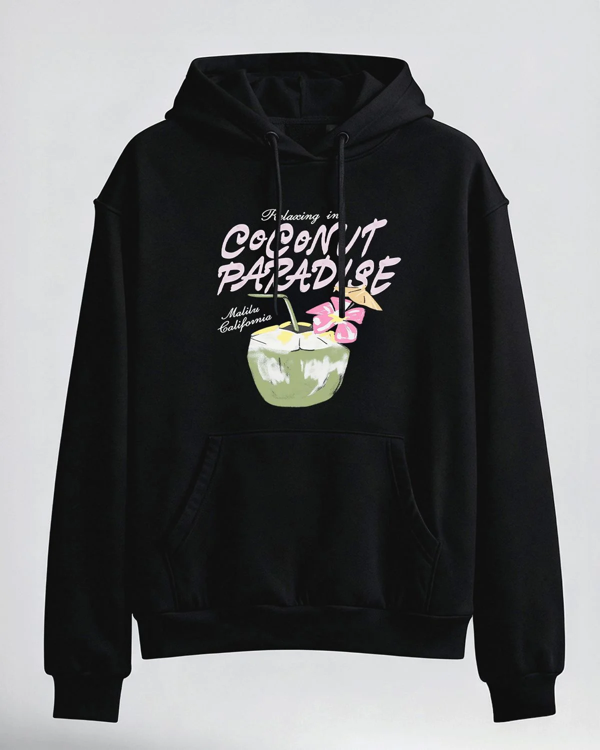 Relaxing in Coconut Paradise Malibu California Cozy Cotton Graphic Hoodie with Pocket-Casual Vintage,Long Sleeve,Soft Fabric,Comfortable Fit